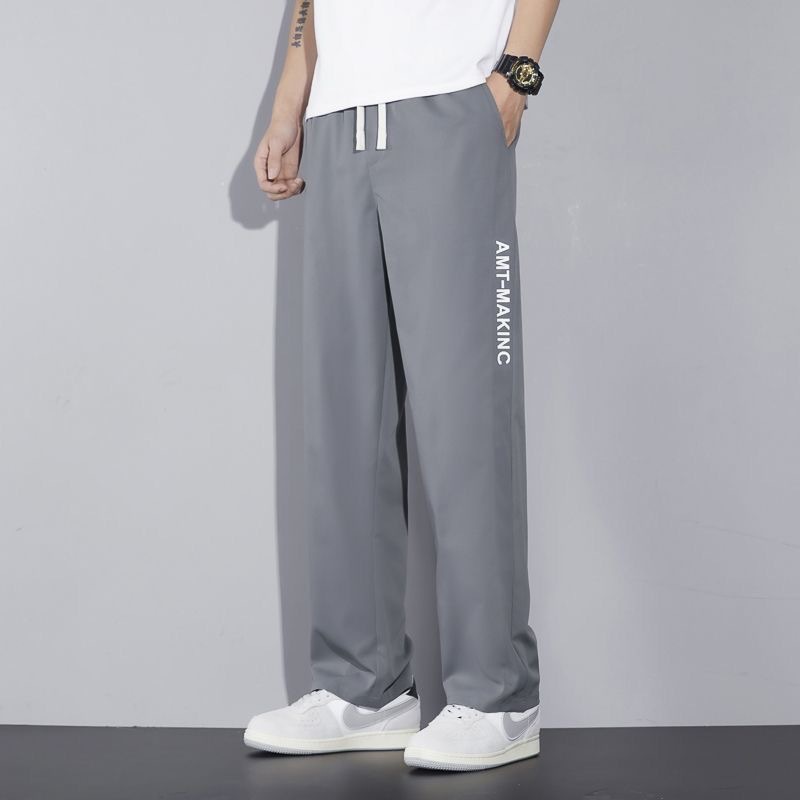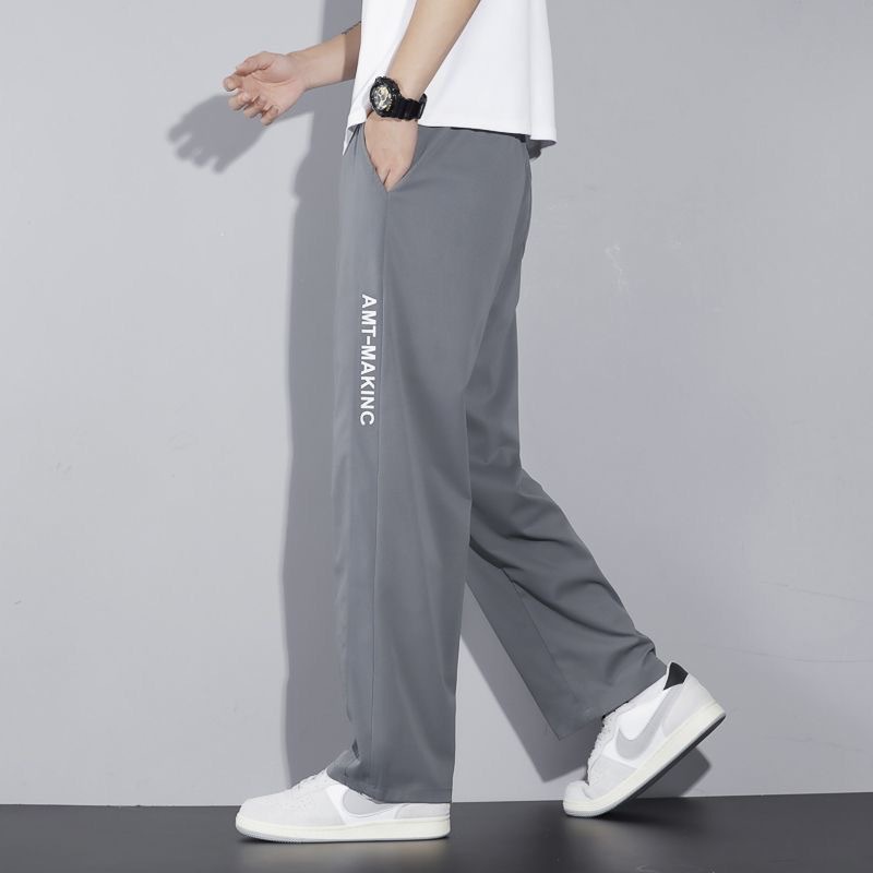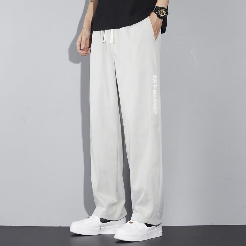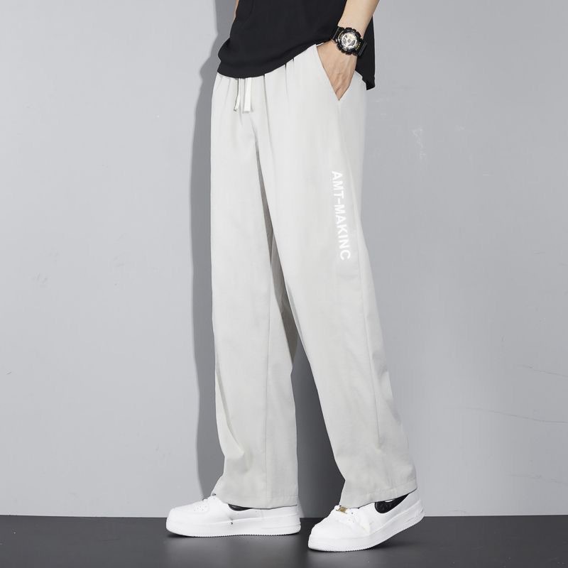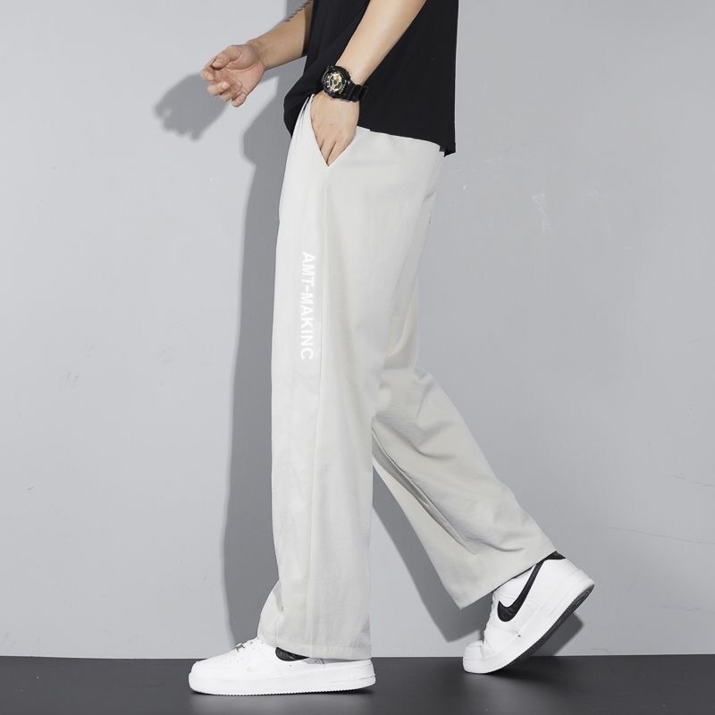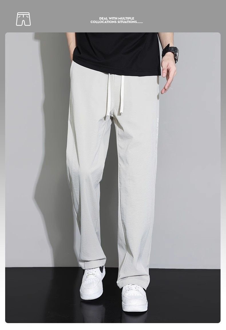 Брюки из ледяного шелка, мужские летние тонкие модные универсальные свободные драпированные быстросохнущие дышащие повседневные прямые широкие длинные брюки