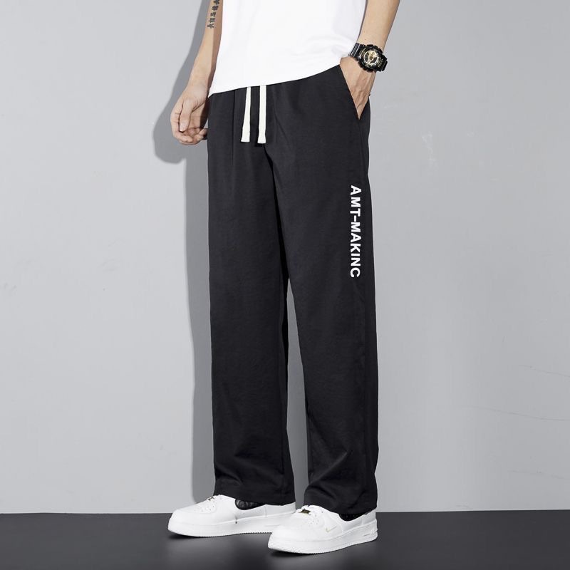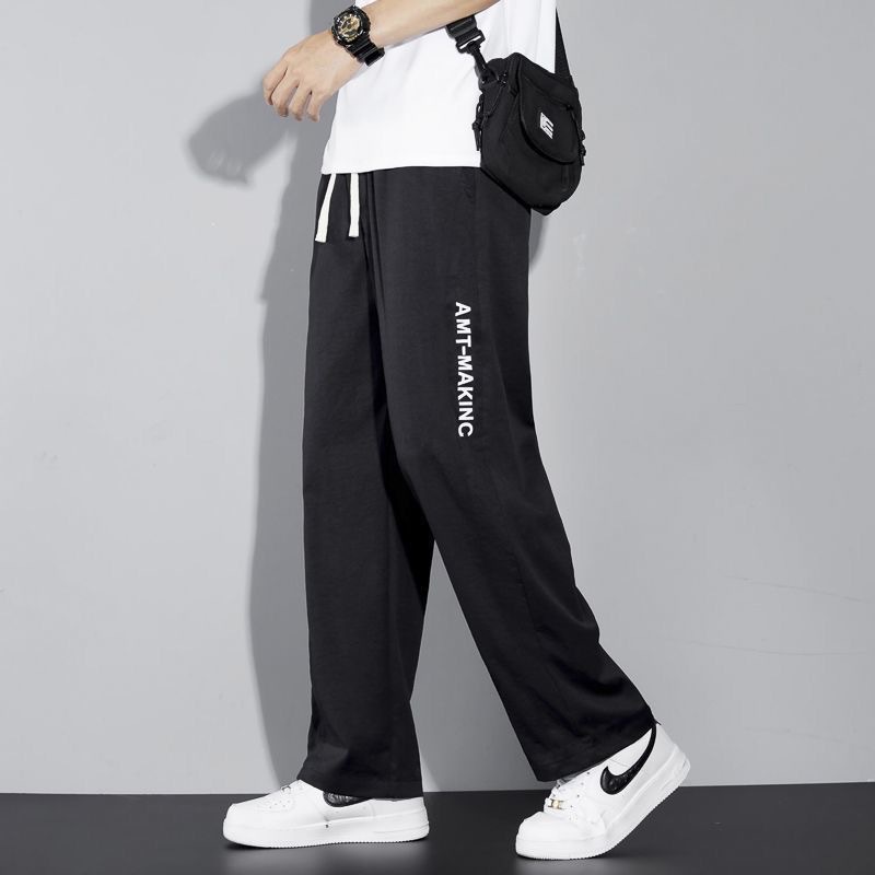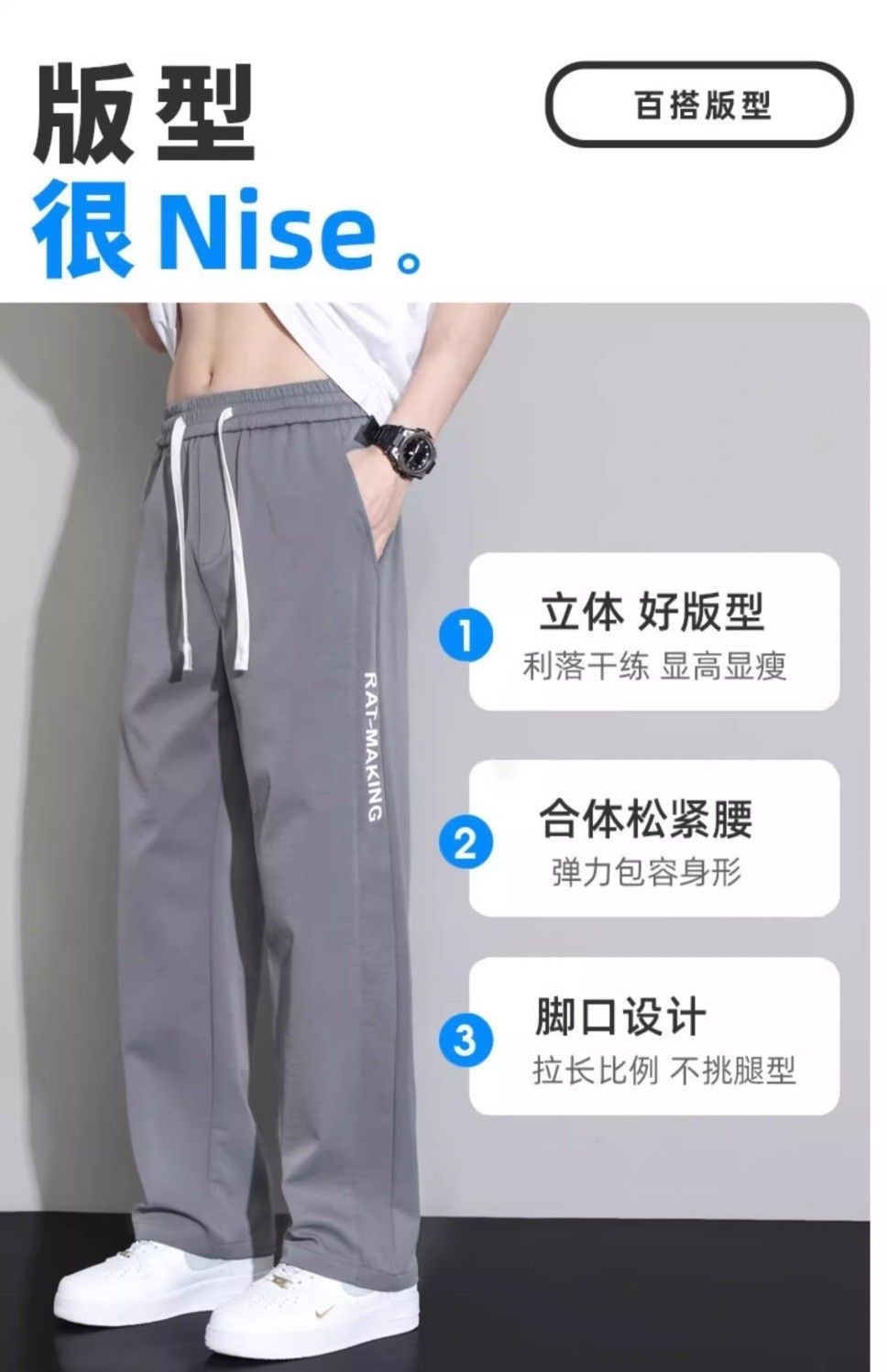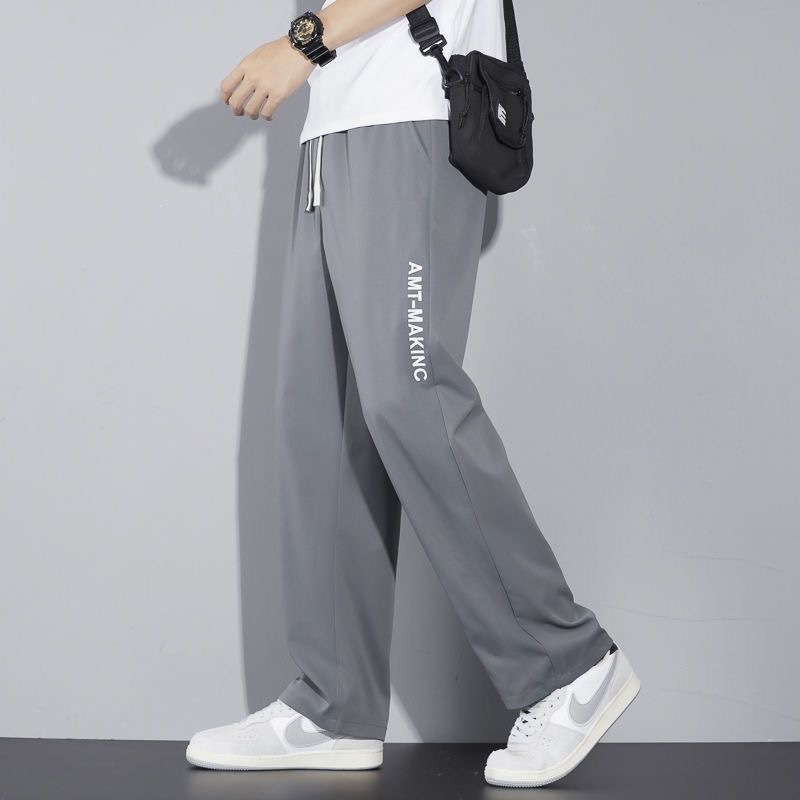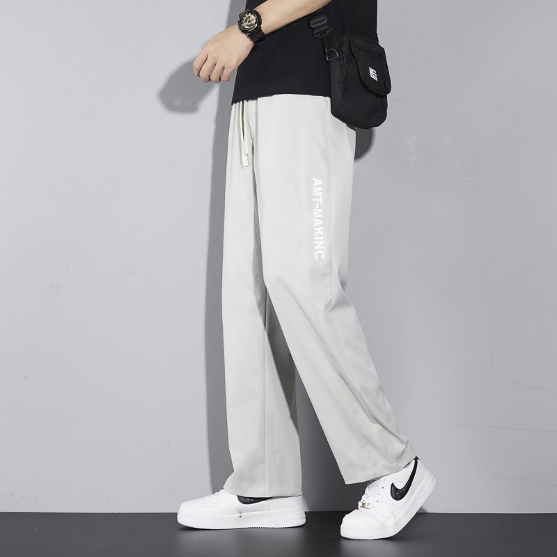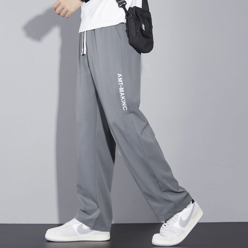 Брюки из ледяного шелка, мужские летние тонкие модные универсальные свободные драпированные быстросохнущие дышащие повседневные прямые широкие длинные брюки