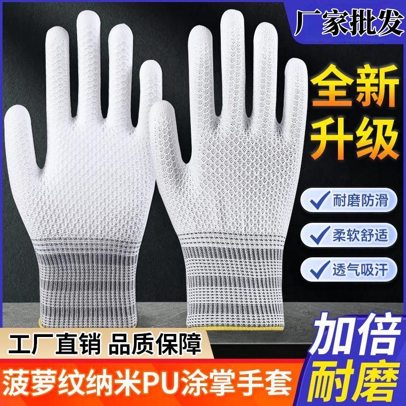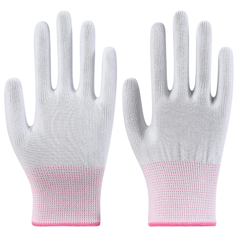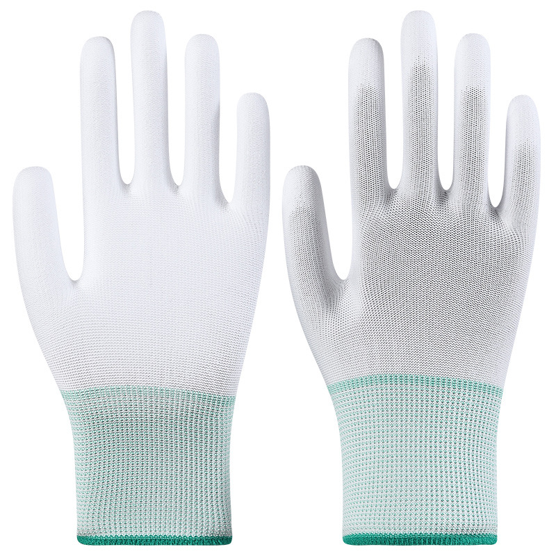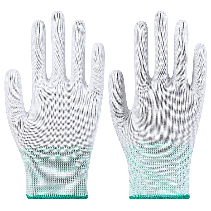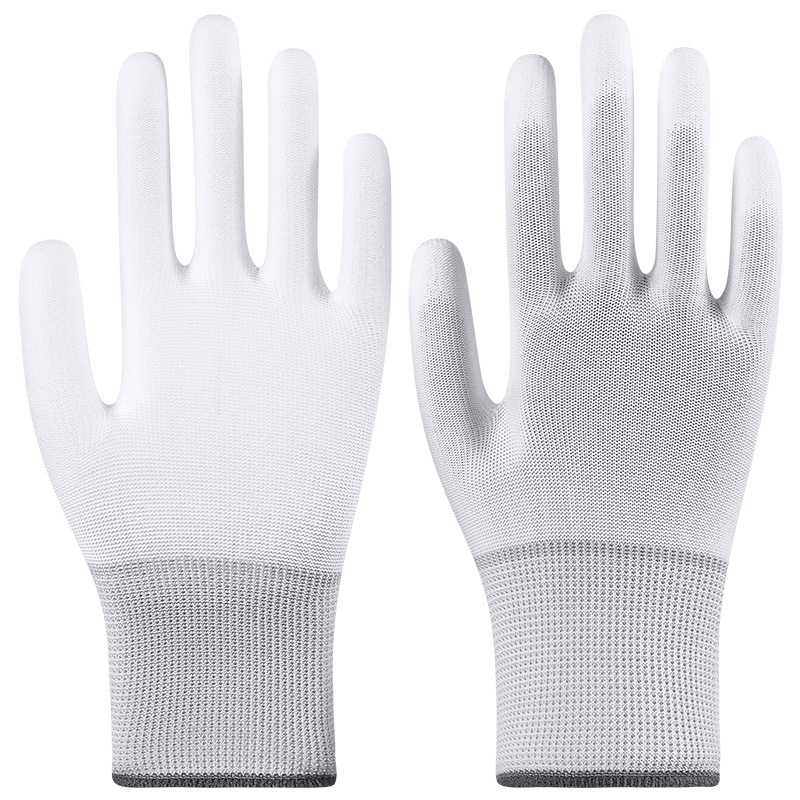 PU с покрытием пальмовые перчатки для защиты труда белые нейлоновые антистатические перчатки тонкие нескользящие и износостойкие перчатки для защиты труда