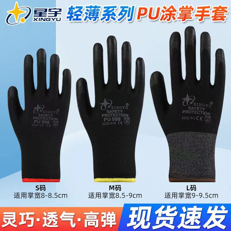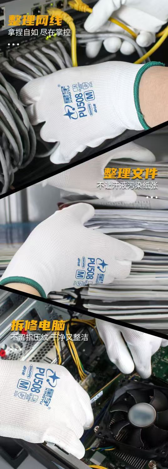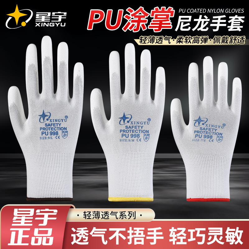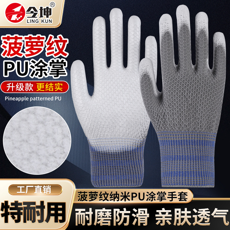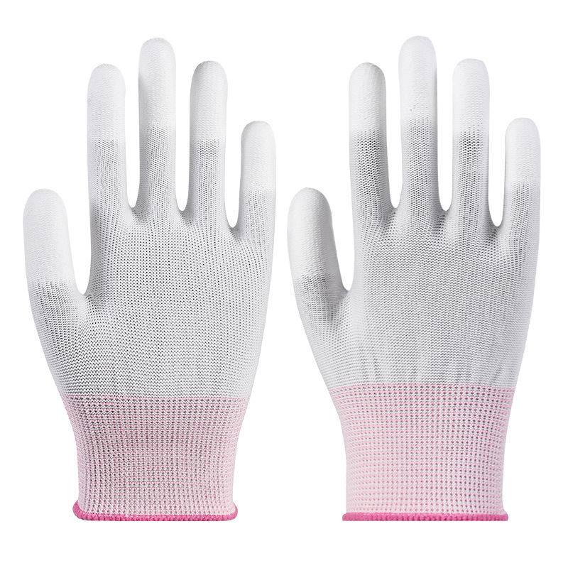PU с покрытием пальмовые перчатки для защиты труда белые нейлоновые антистатические перчатки тонкие нескользящие и износостойкие перчатки для защиты труда