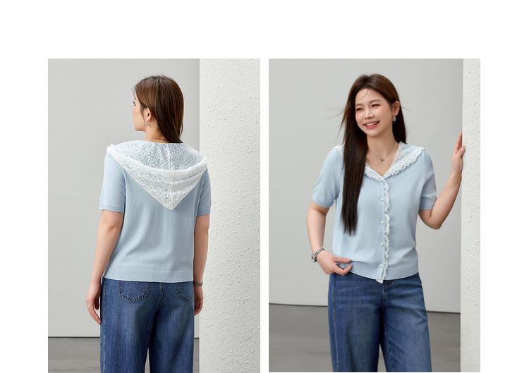 [Orufeng Нежный кружевной вязаный кардиган с капюшоном] Тонкая и красивая женская одежда больших размеров, толстая мм 2025, новый летний стиль