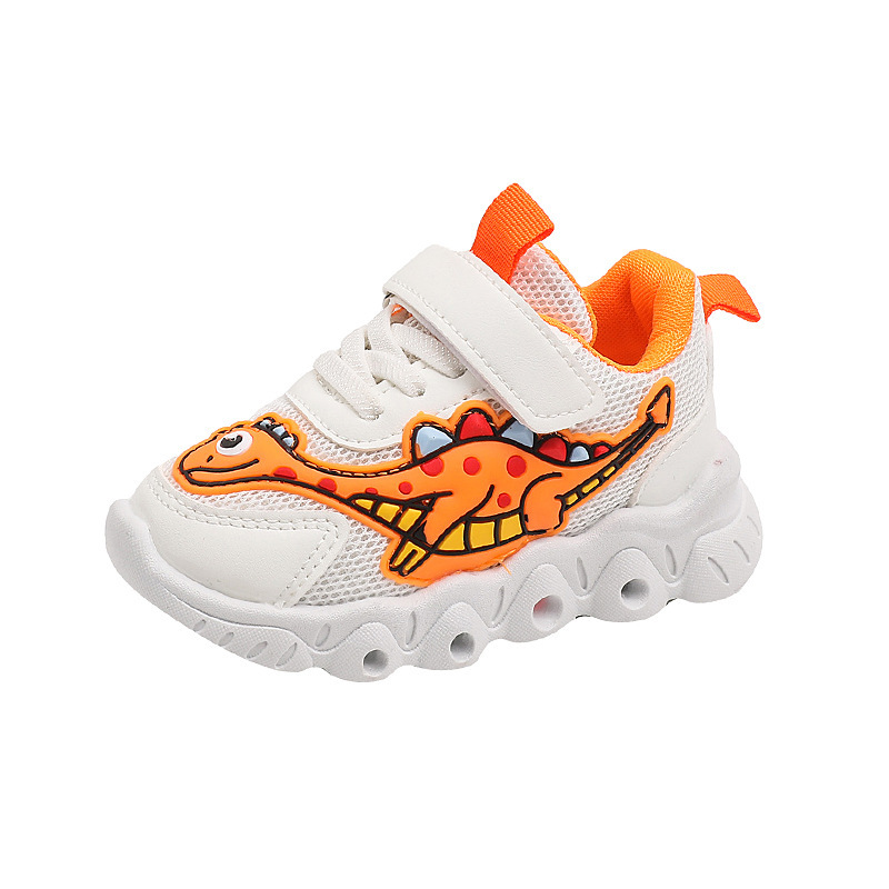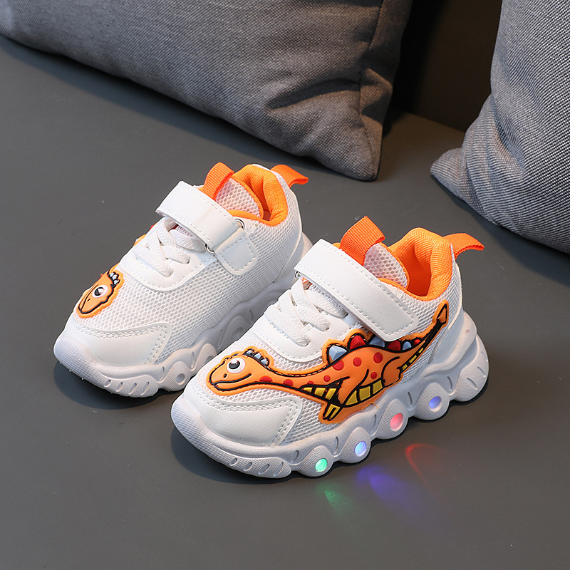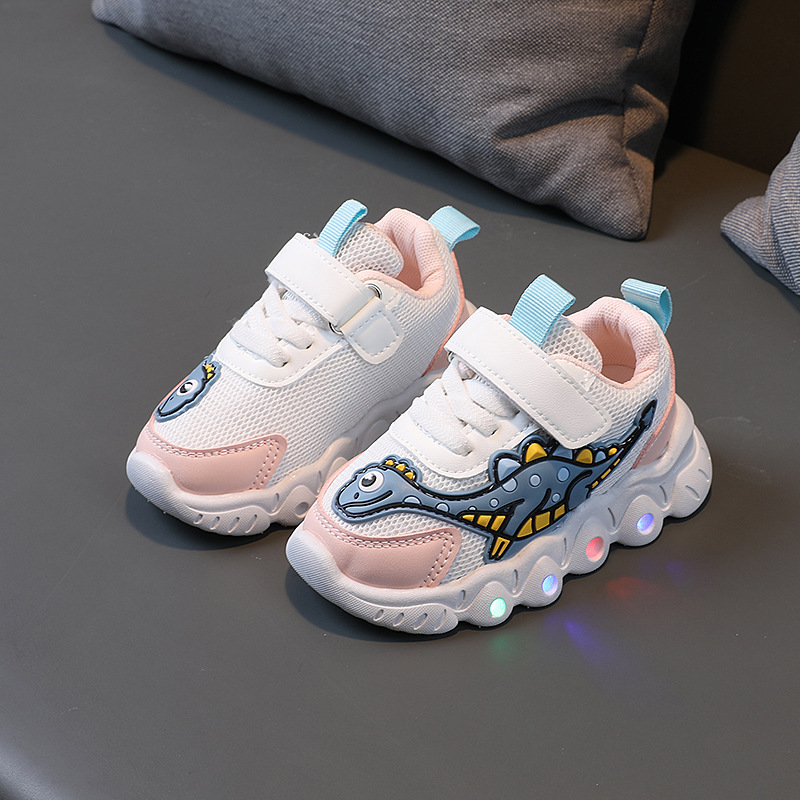 Популярные кроссовки для мальчиков и девочек с динозаврами, светодиодной подсветкой, новые весенне-осенние сетчатые дышащие эластичные слипоны для детей