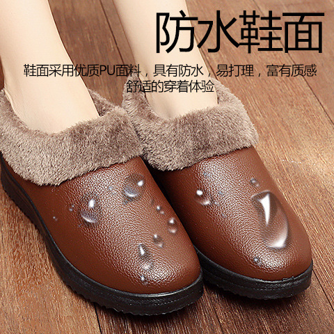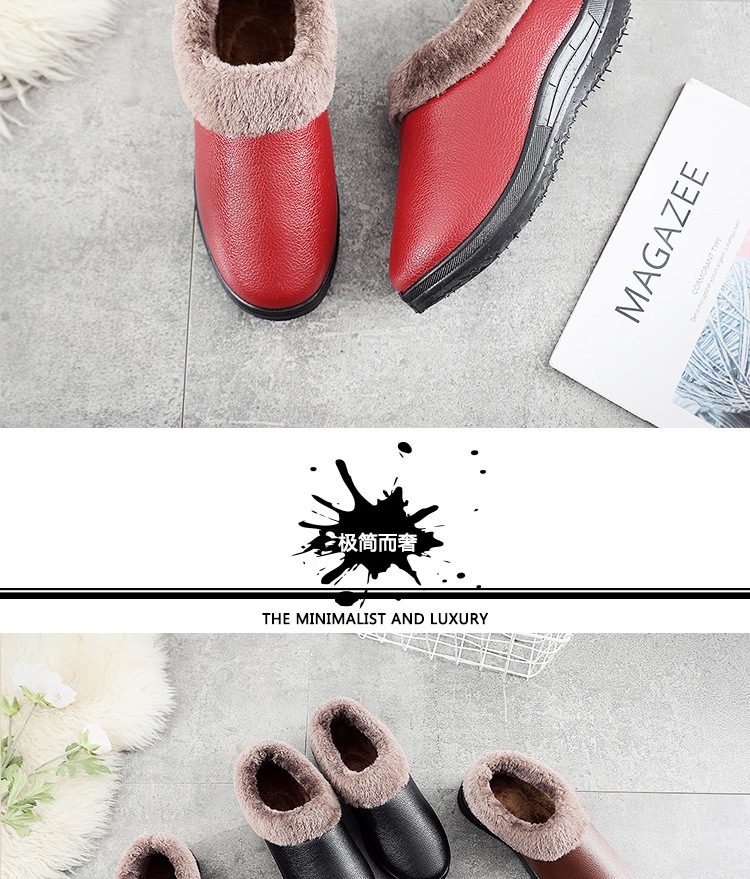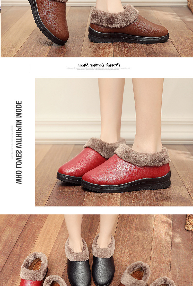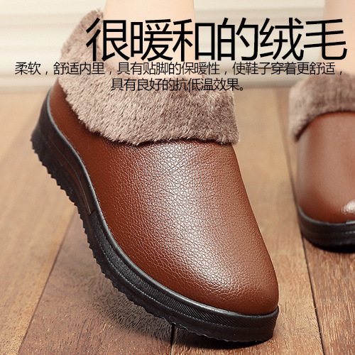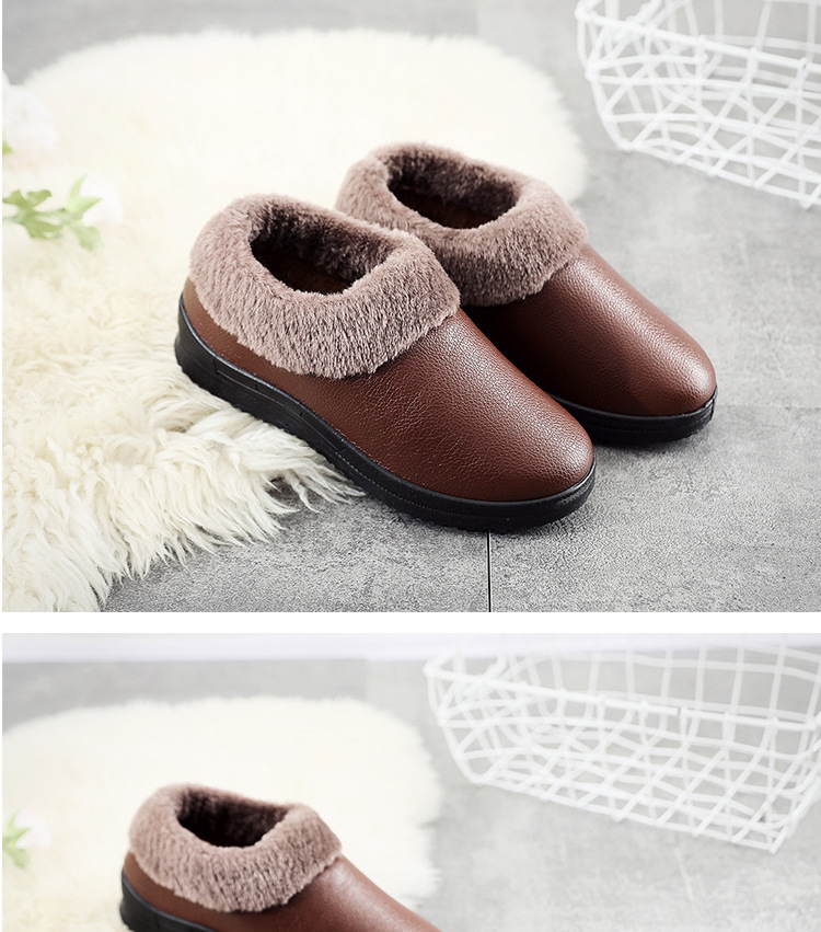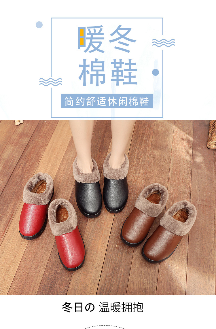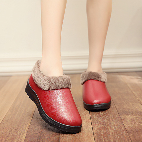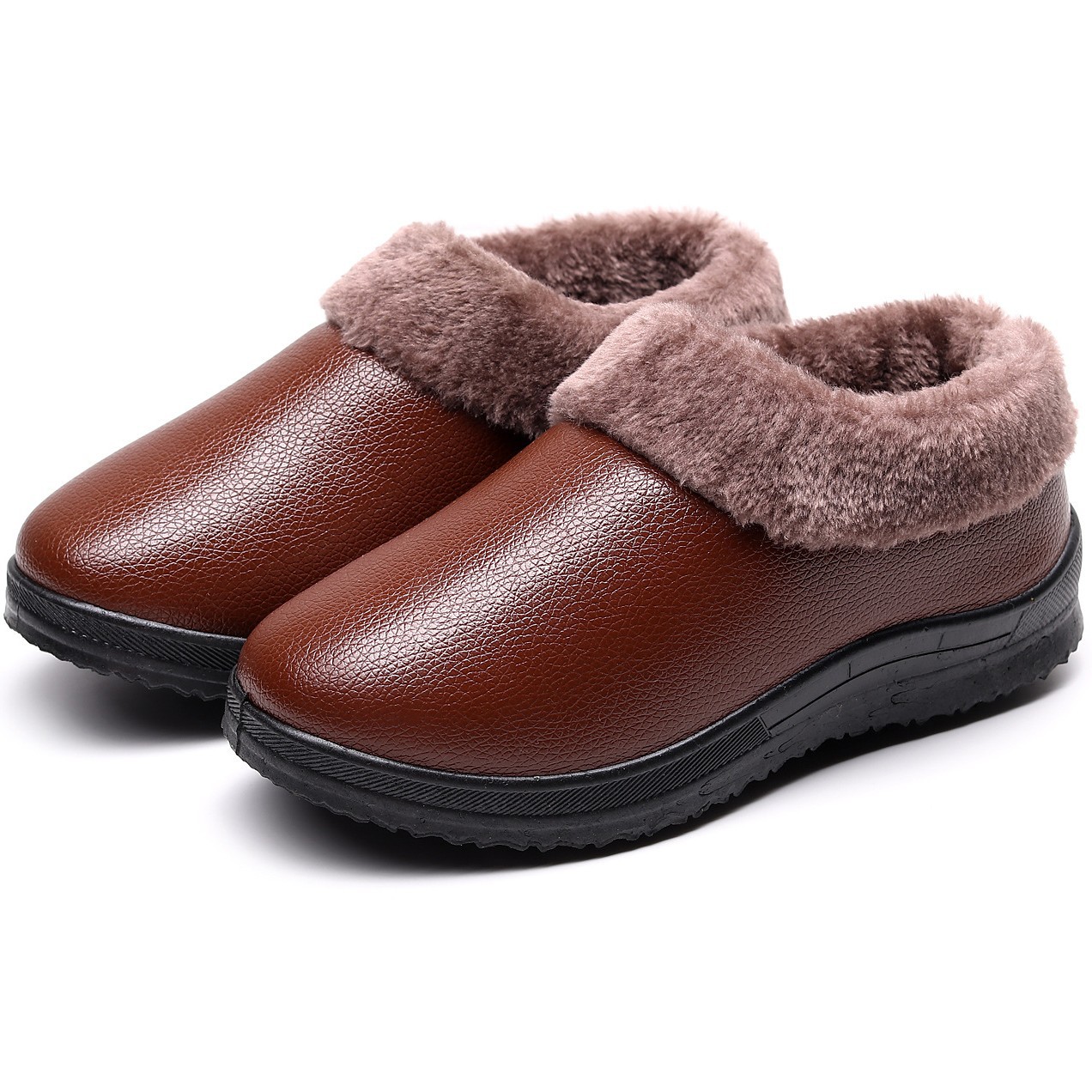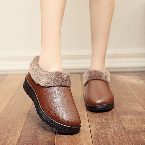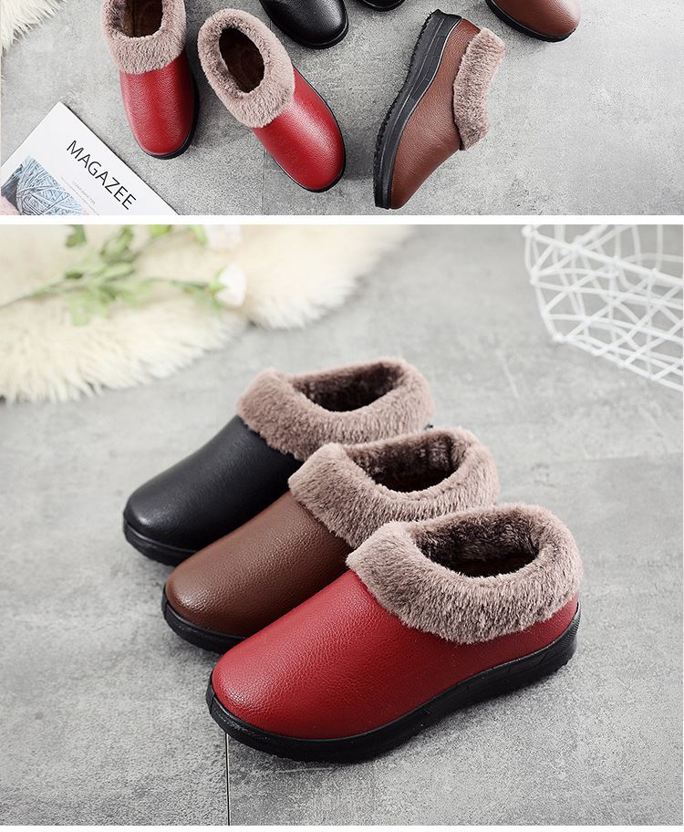 Женская зимняя хлопчатобумажная обувь для дома, обувь для мамы, утепленная хлопчатобумажная обувь на флисовой подкладке, поверхность из ПУ, водонепроницаемые, противоскользящие зимние ботинки, хлопчатобумажная обувь на толстой подошве, однотонная.