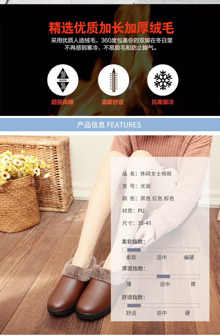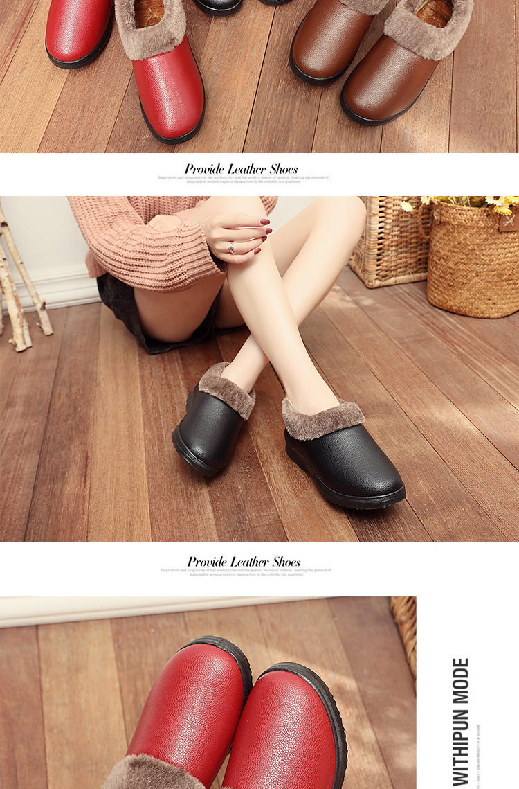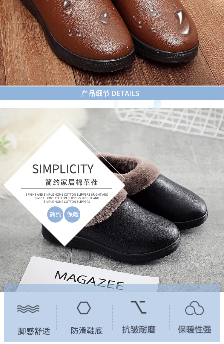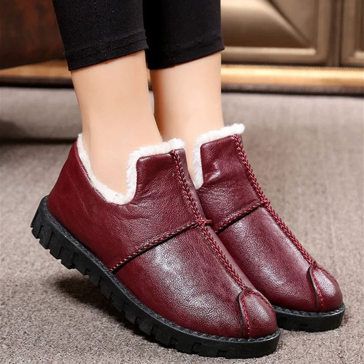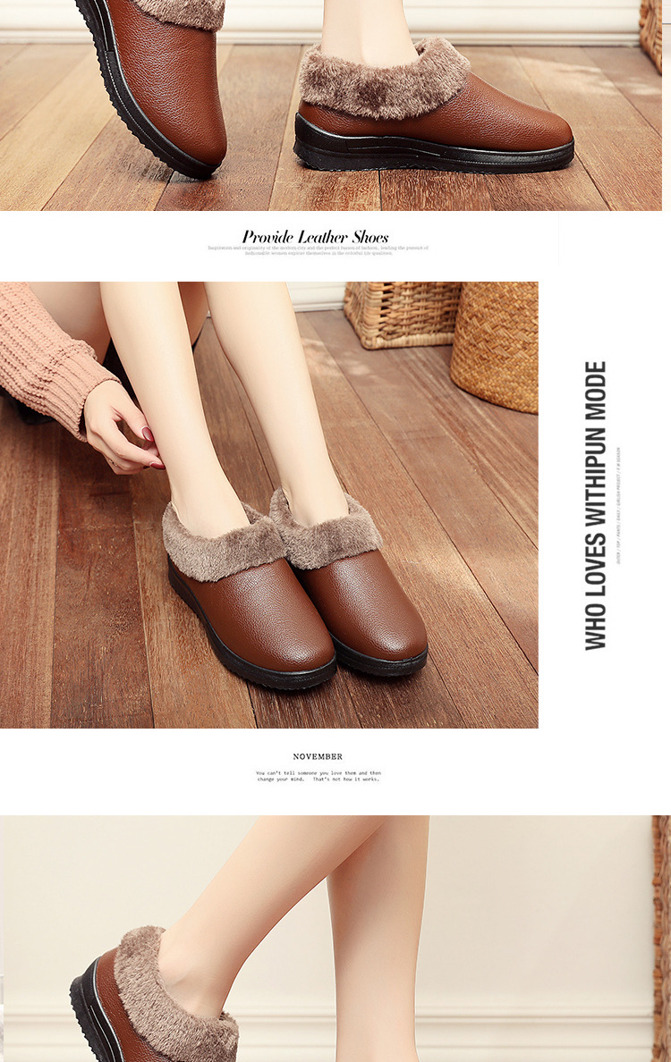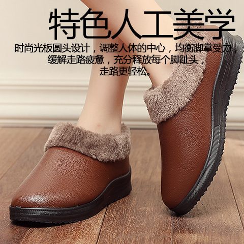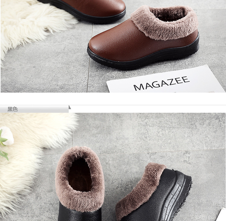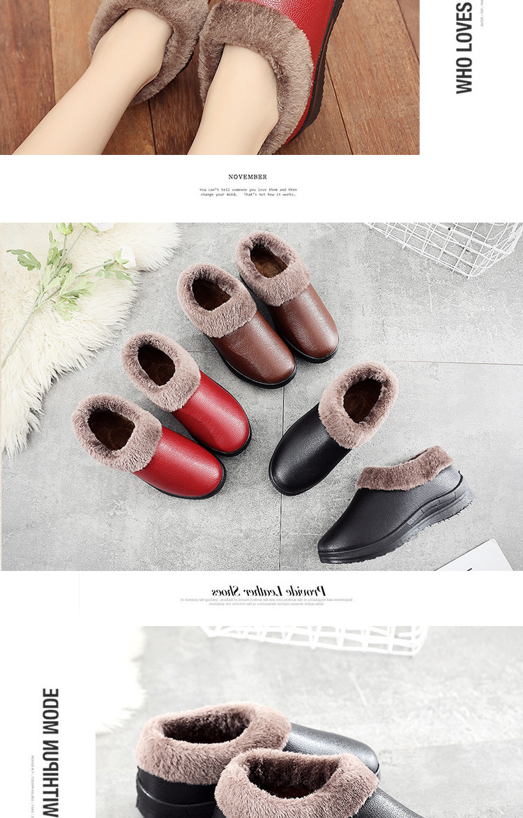 Женская зимняя хлопчатобумажная обувь для дома, обувь для мамы, утепленная хлопчатобумажная обувь на флисовой подкладке, поверхность из ПУ, водонепроницаемые, противоскользящие зимние ботинки, хлопчатобумажная обувь на толстой подошве, однотонная.