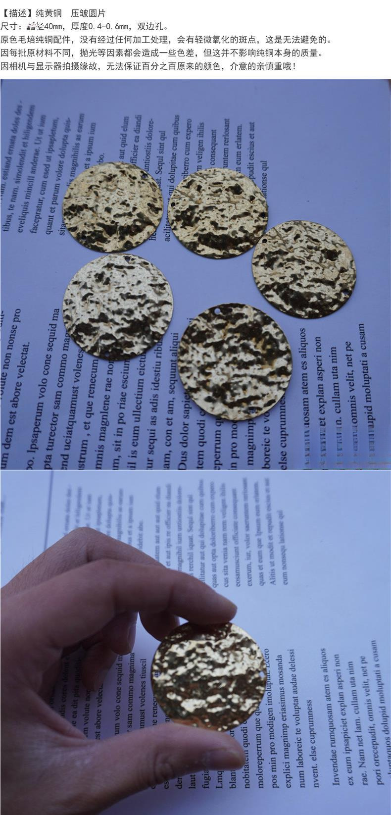 40 мм двусторонний гладкий диск из чистой латуни с неровной морщинистой поверхностью, для самостоятельного изготовления украшений из металла