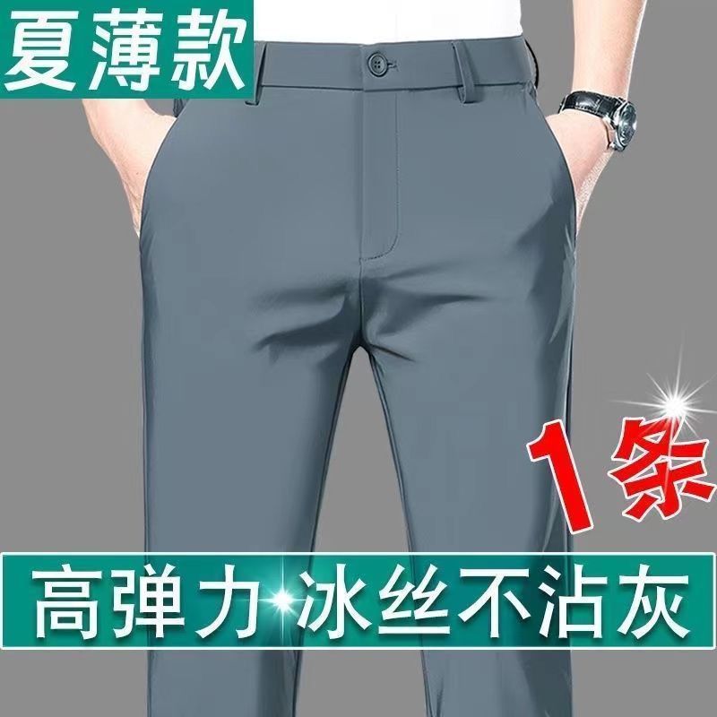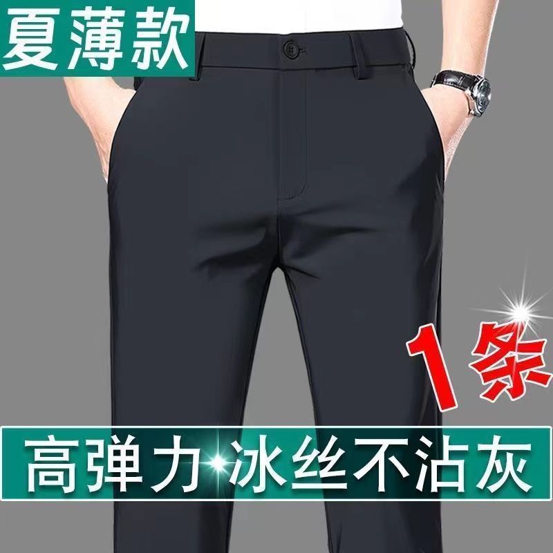 Высокоэластичные мужские повседневные брюки из ледяного шелка, прямые свободные деловые брюки без морщин, элитные летние тонкие длинные брюки с драпировкой
