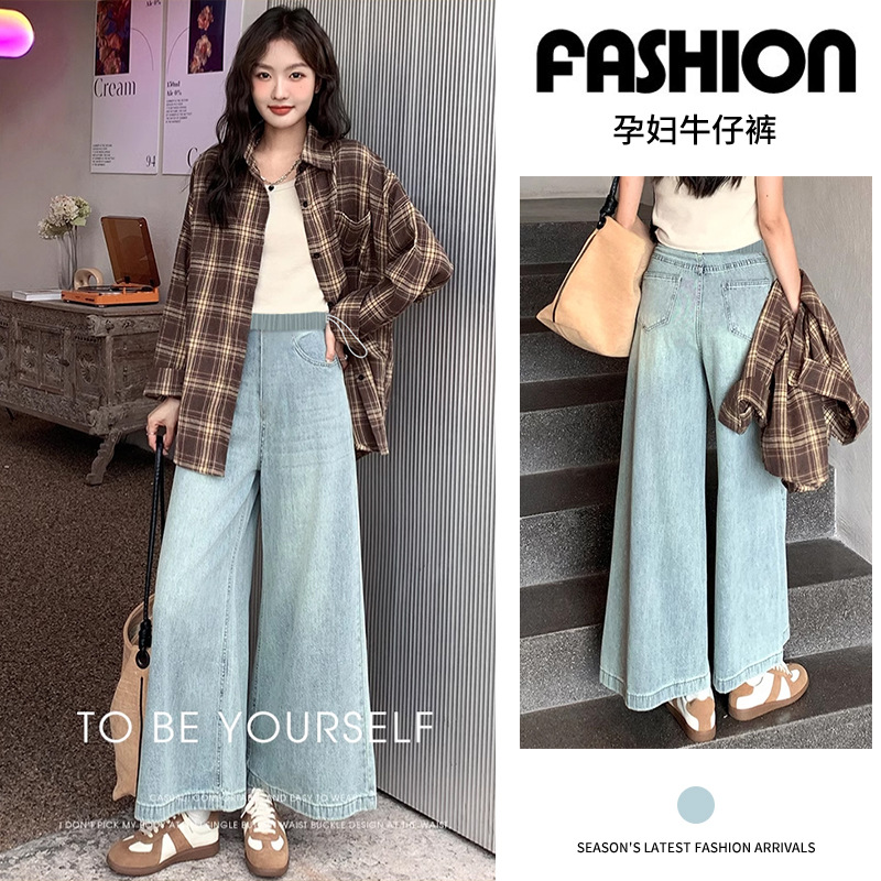 Тонкие джинсовые укороченные брюки для беременных новый летний расклешенные брюки для беременных свободные широкие брюки без живота брюки для беременных