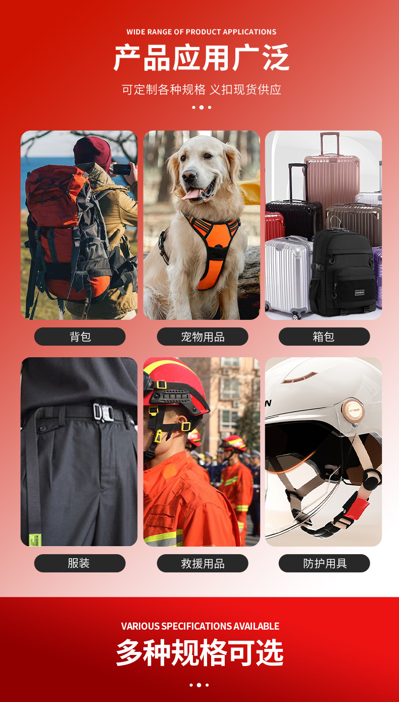 Заводская прямая продажа пластиковых поворотных карабинных застежек для багажа и животных, многоспецификационные, 15-50 мм, готовые к использованию.