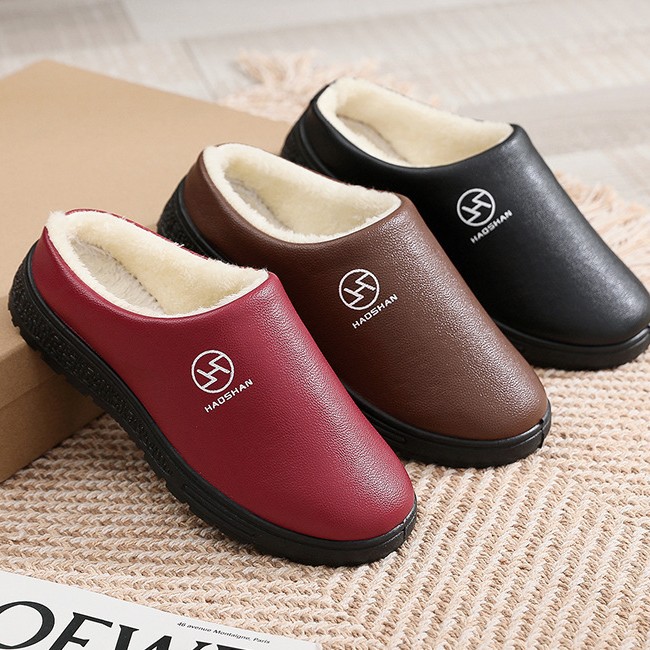 Женские водонепроницаемые хлопковые тапочки для зимы, тапочки на толстой нескользящей подошве для дома, мужские и женские домашние туфли, женская модель 2025 года из полиуретана