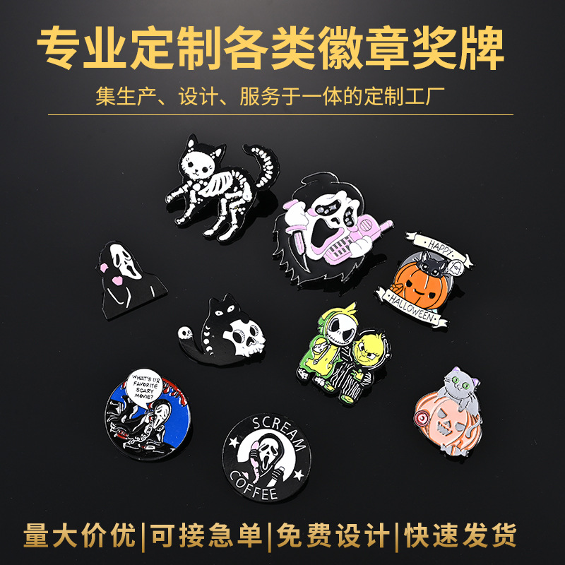 Изготовленные на заказ металлические значки, значки с эмалевой краской в стиле мультфильмов, памятные значки из сплава, броши на Хэллоуин, на заказ