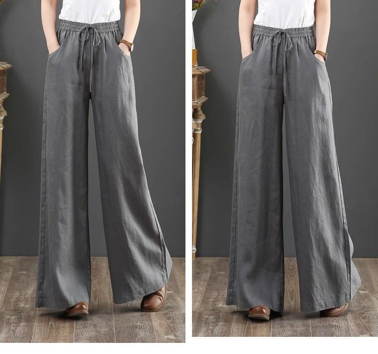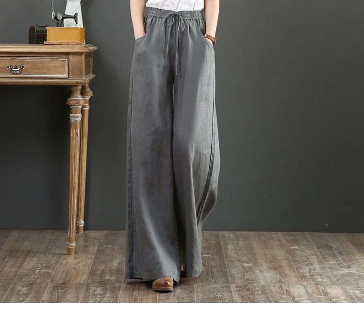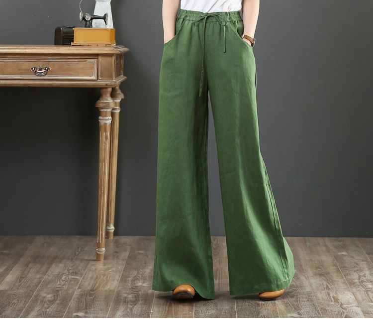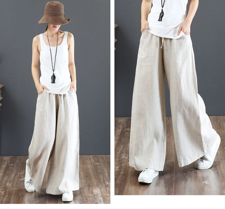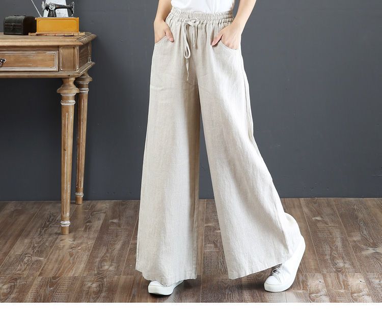 Весенние и летние новые литературные хлопковые и льняные женские брюки свободные большие размеры широкие брюки с высокой талией