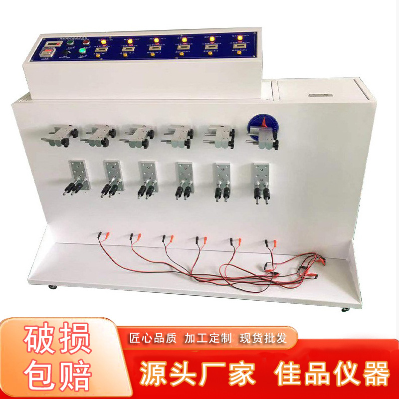 5、六组工位同时工作,互不影响,分别计数,其中一组断线,对应计数器停止计数,机器照常试验,提高测试效率;