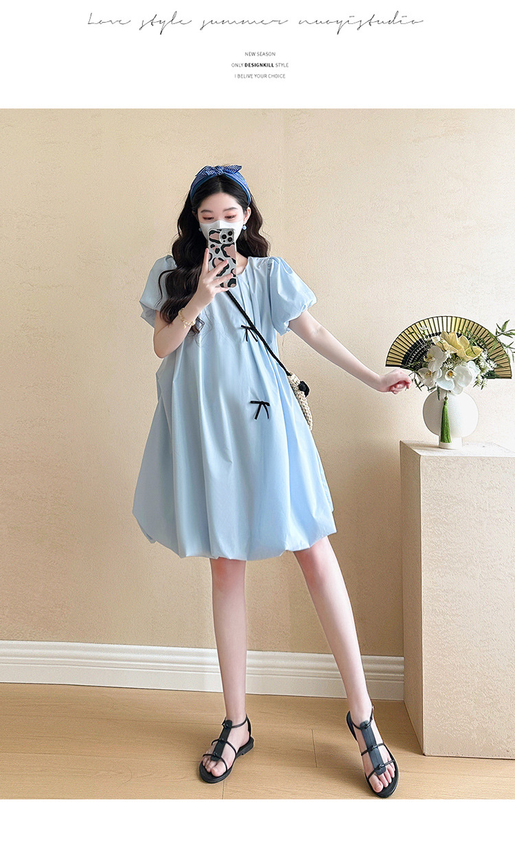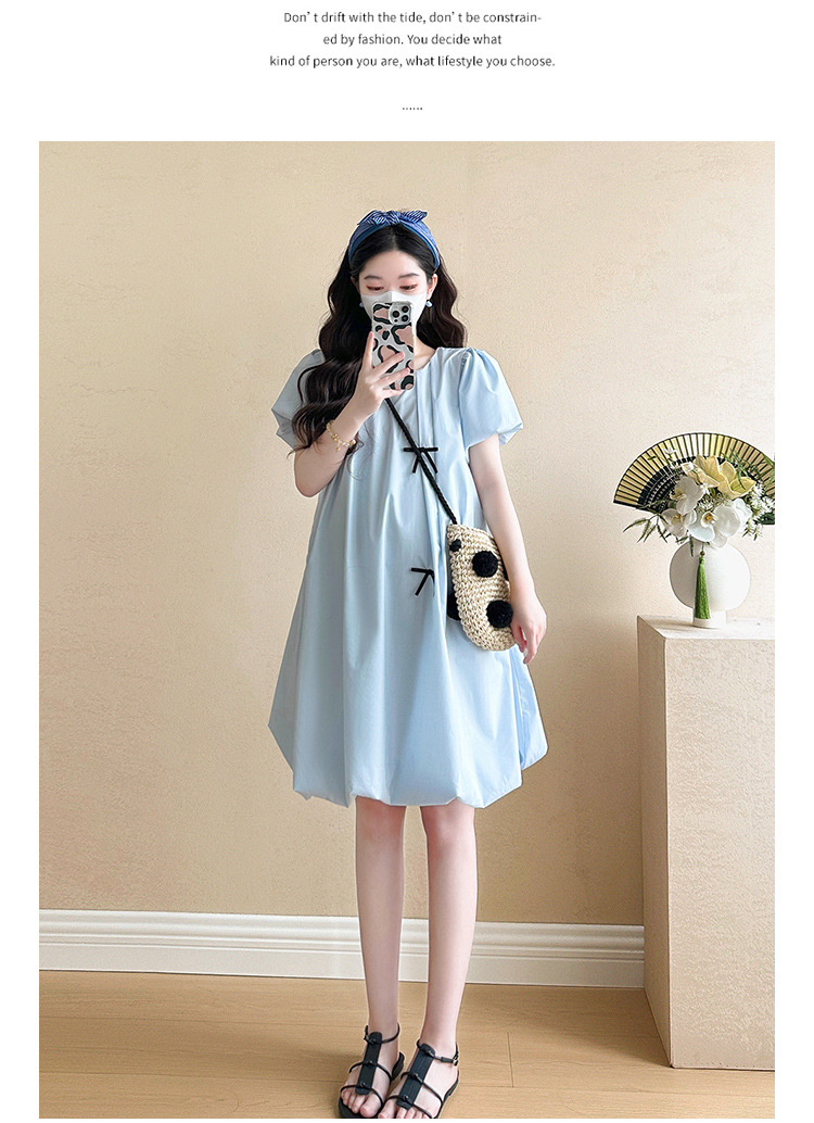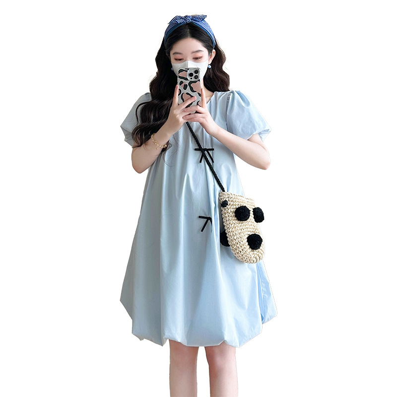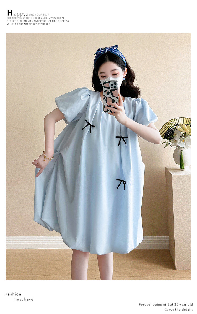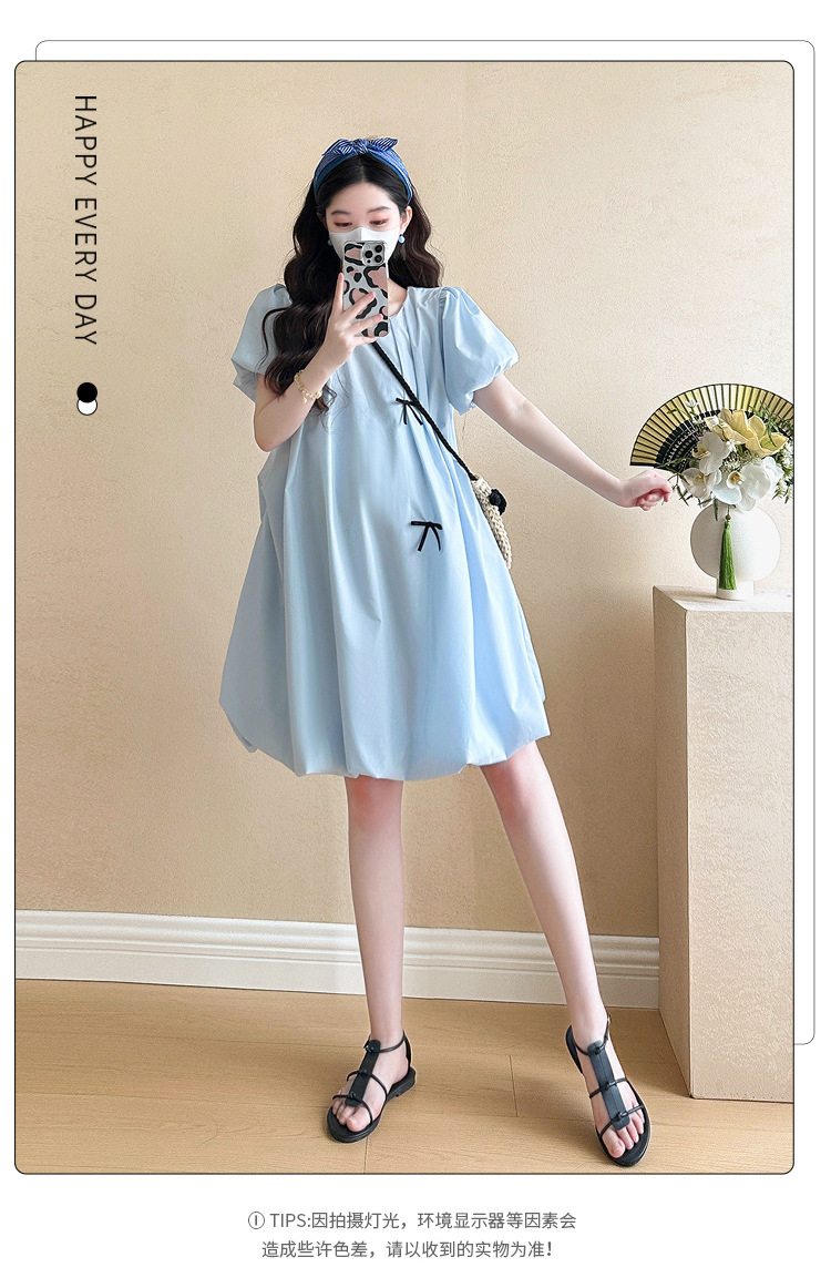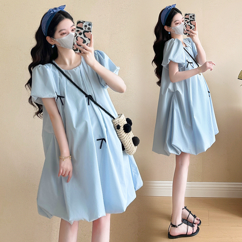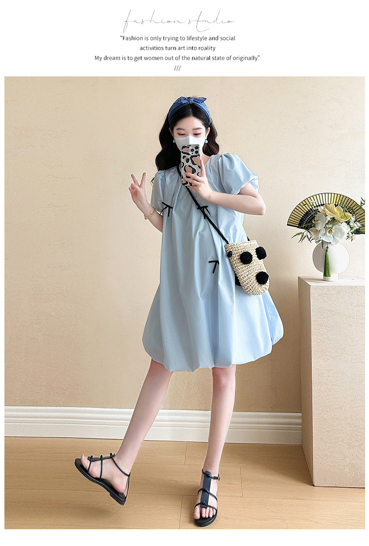 Платье для беременных, летнее платье, дизайн, свободная бутоны, платье с бантиком, маленькое сладкое платье с короткими рукавами