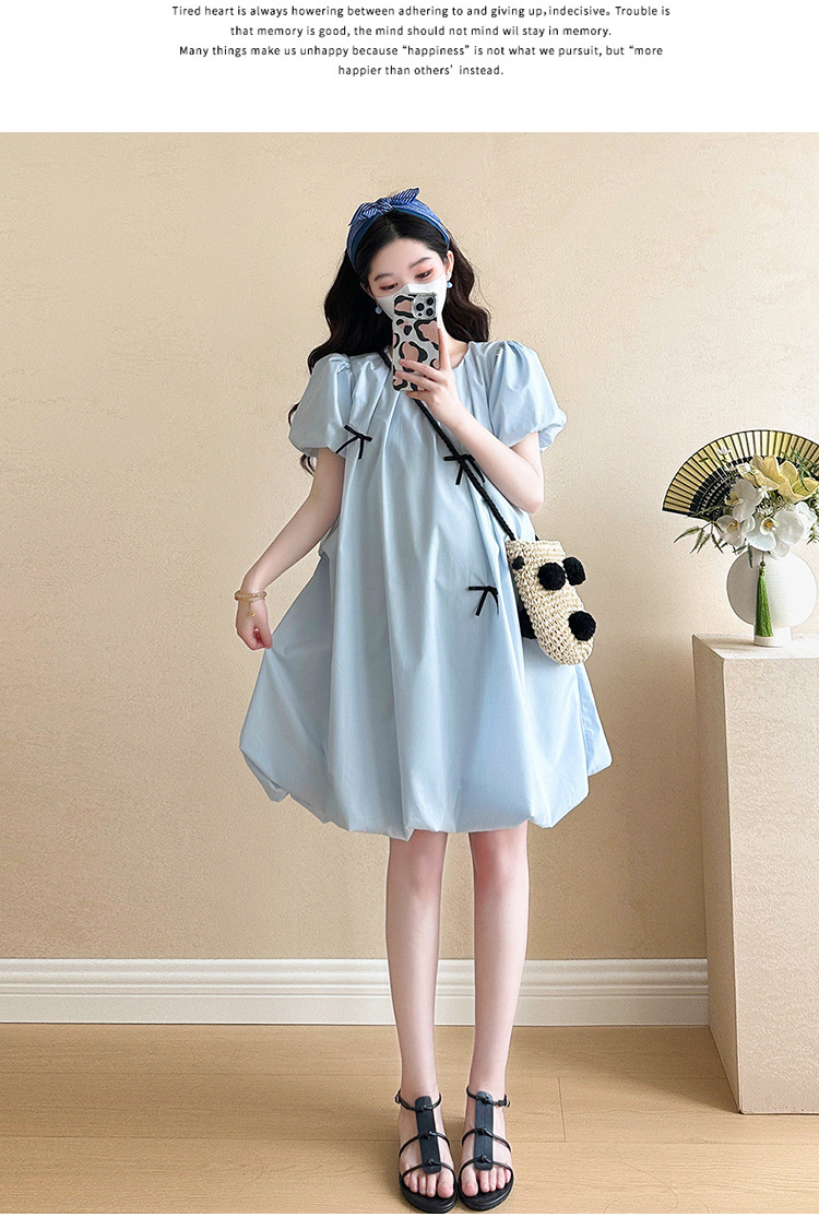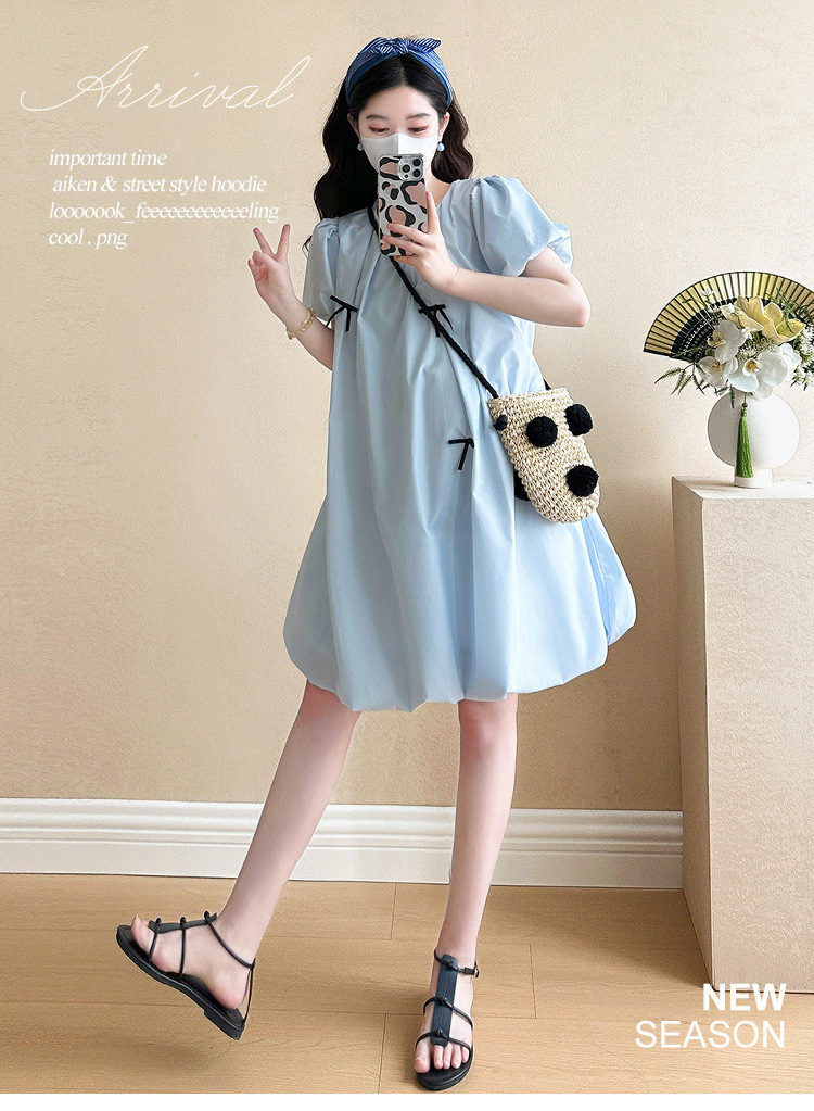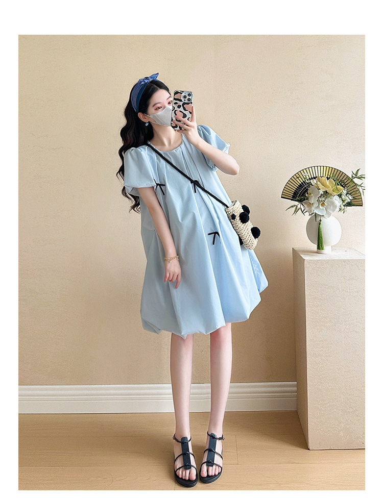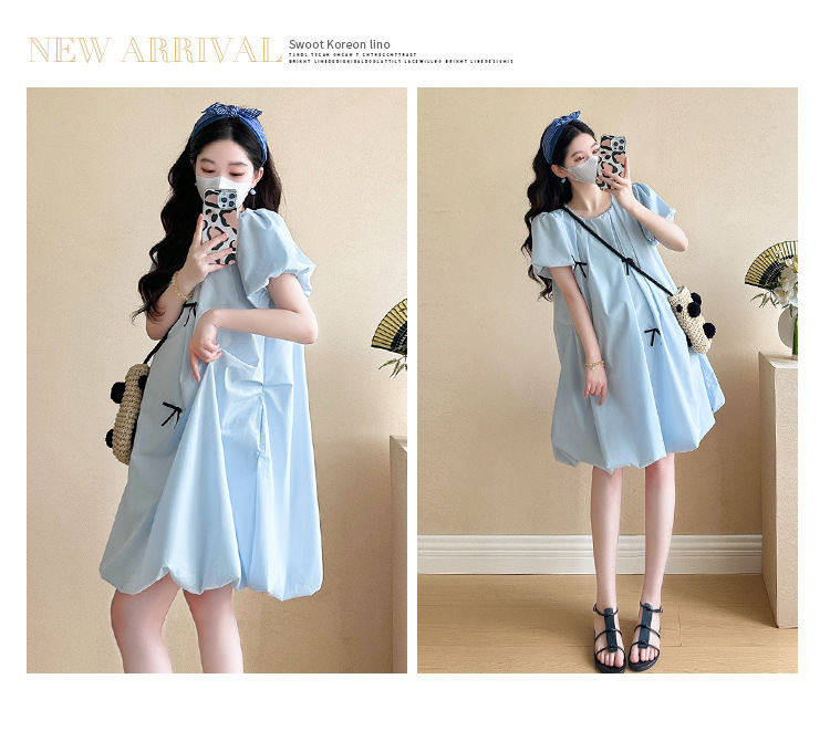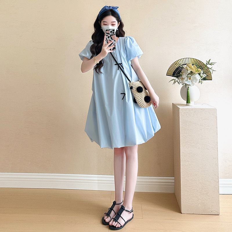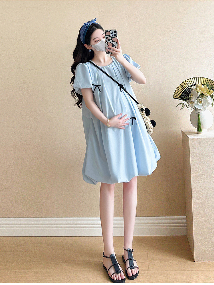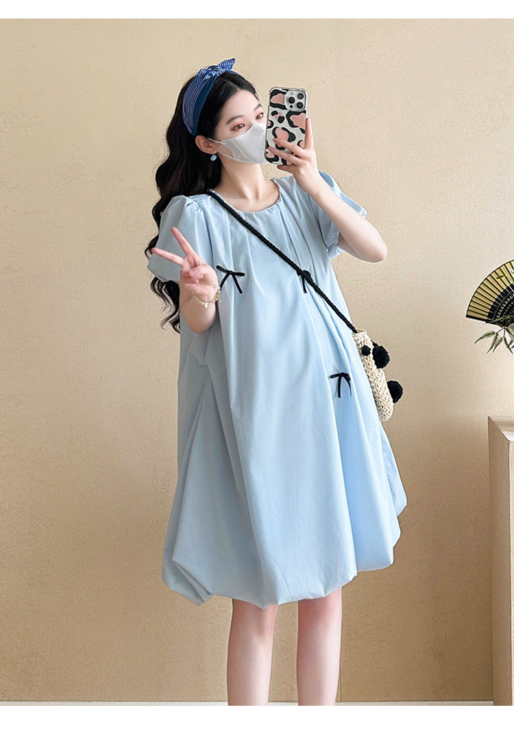 Платье для беременных, летнее платье, дизайн, свободная бутоны, платье с бантиком, маленькое сладкое платье с короткими рукавами