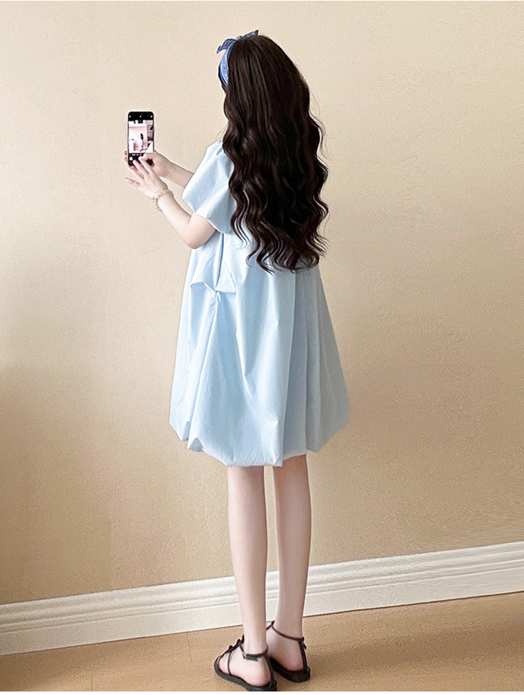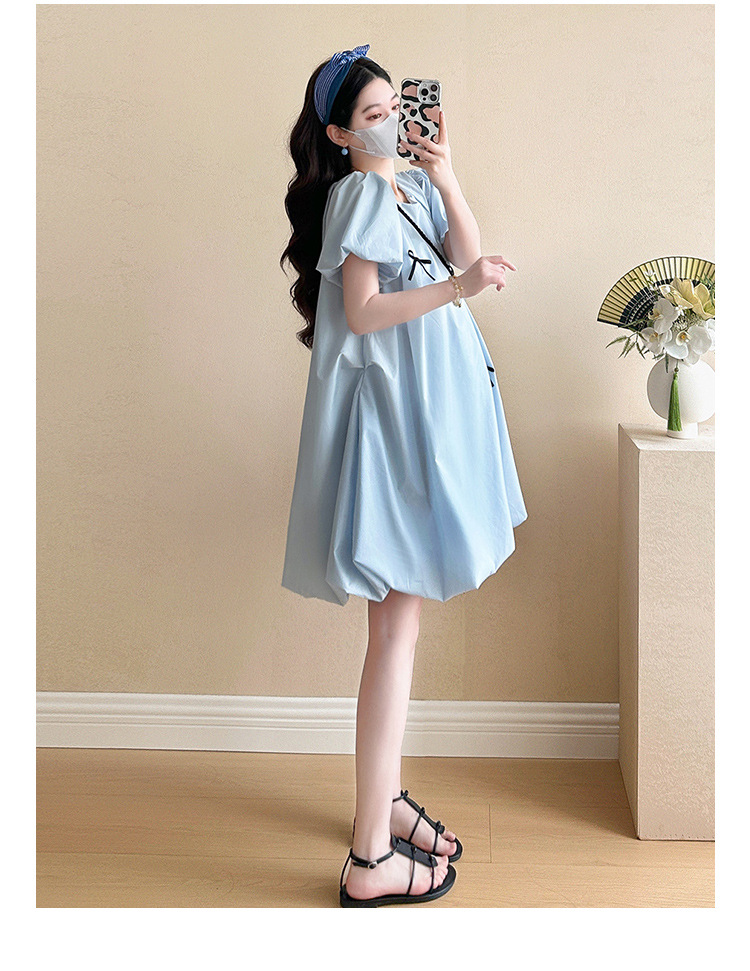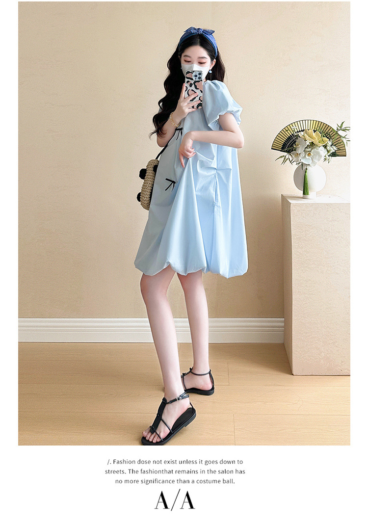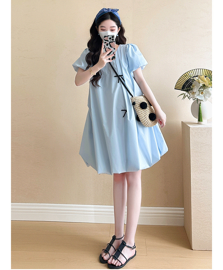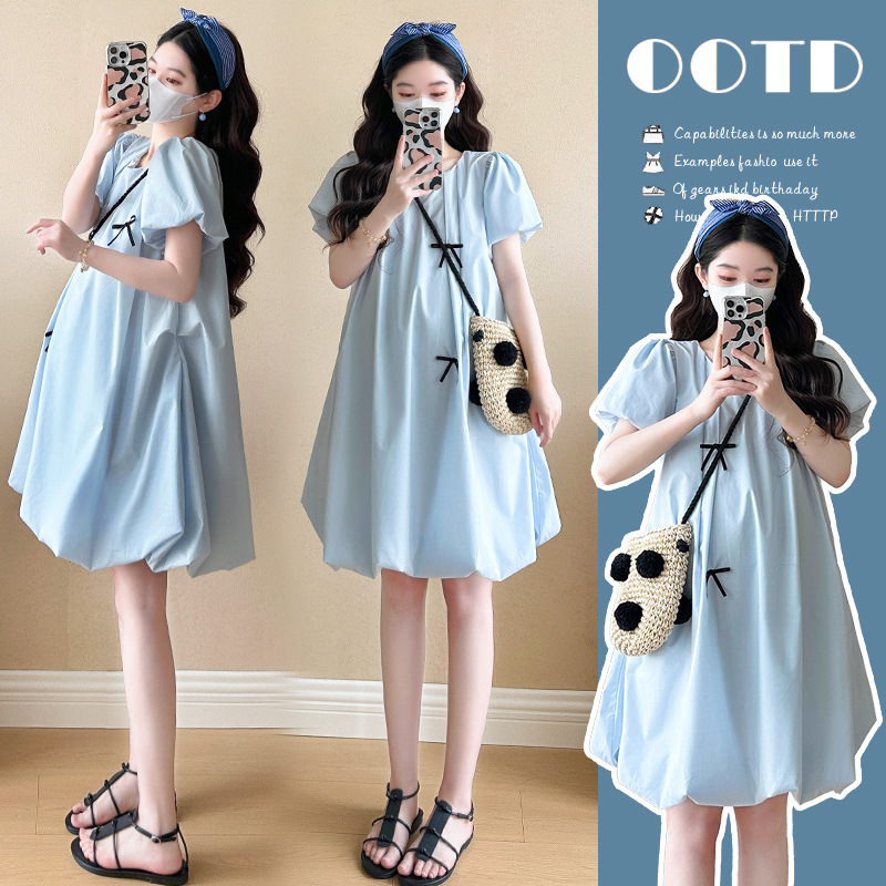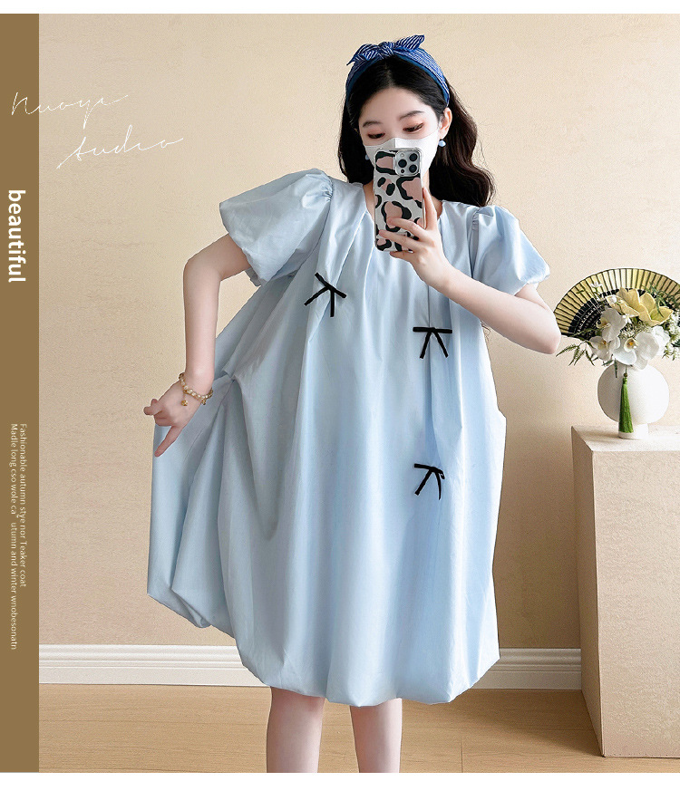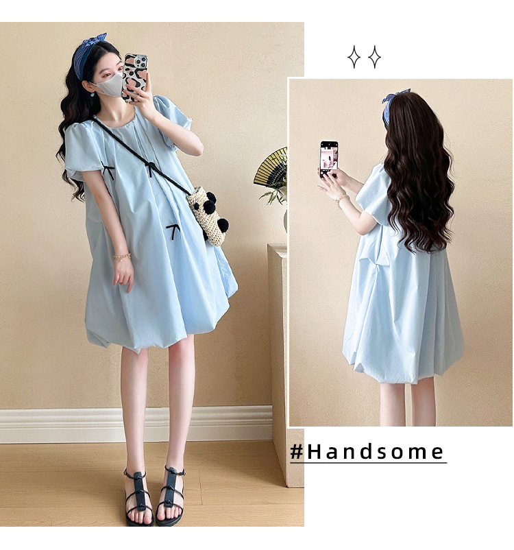 Платье для беременных, летнее платье, дизайн, свободная бутоны, платье с бантиком, маленькое сладкое платье с короткими рукавами