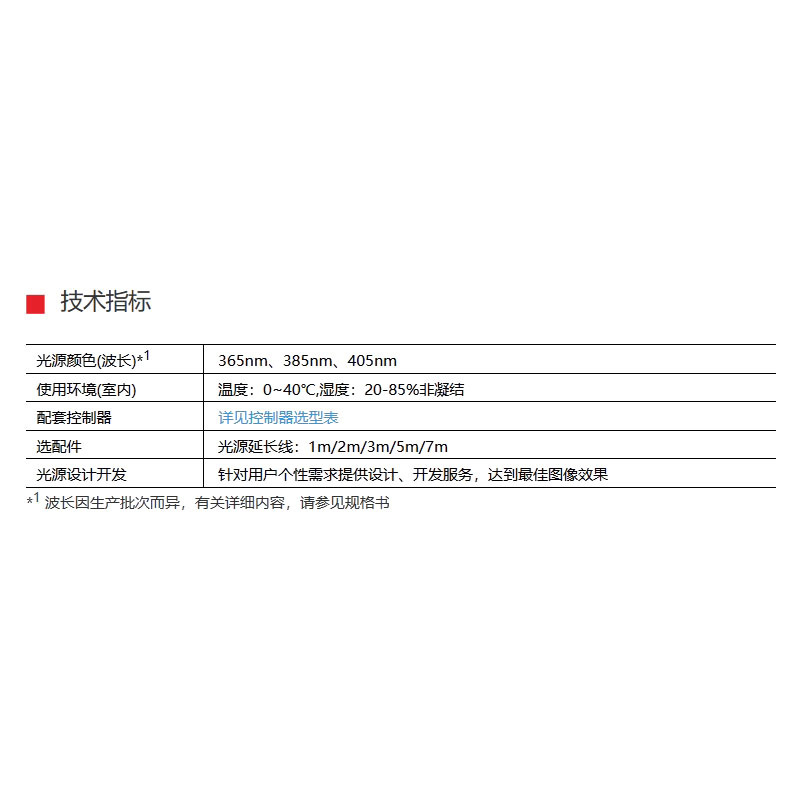 Цвет источника света: красный, белый, синий и зеленый. Для получения дополнительной информации обратитесь в службу поддержки клиентов.; LAR3-100-30UV385 (предоплата); LAR3-132-15UV365 (предоплата); HDR-40-90UV365-A (предоплата); HDR3-70-90UV365 (предоплата); HDR3-70-90UV385 (предоплата); HDR3-90-90UV365 (предоплата); HDL3-80X16UV385 (предоплата); HDL3-197X16UV385-A (предоплата); HDL3-74X30UV385-A (предоплата); HDL3-98X30UV385-A (предоплата); HDL3-146X30UV365-A (предоплата); HDL3-146X30UV385-A (предоплата); HDL3-170X30UV365-A (предоплата); HDL3-194X30UV385-A (предоплата); HDL3-218X30UV385-A (предоплата); HDL3-266X30UV365-A (предоплата); HDL3-290X30UV385-A (предоплата); HDL3-386X30UV365-A (предоплата); HDL3-434X30UV385-A (предоплата); CO3-70UV385 (предоплата)