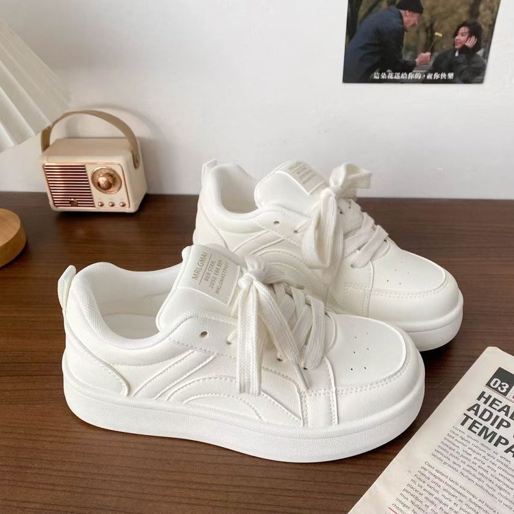 Белые молочные туфли на толстой подошве женские кожаные лапши весна 2025 новый chic нишевые дышащие дикие студенческие спортивные маленькие белые туфли