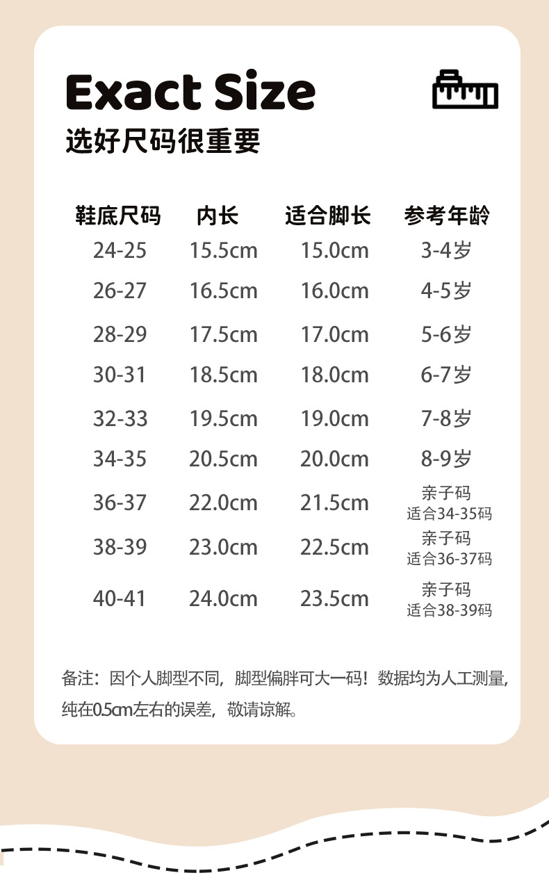 Длина примерно 15,5 см в размере 24-25.; Внутренняя длина 26-27 размера около 16,5 см.; Внутренняя длина 28-29 размера около 17,5 см.; Длина примерно 18,5 см в размере 30-31.; Внутренняя длина 32-33 размера около 19,5 см.; Внутренняя длина 34-35 размера около 20,5 см.; Внутренняя длина 36-37 размера около 22,0 см.; Внутренняя длина 38-39 размера около 23,0 см.; Внутренняя длина размера 40-41 составляет около 24,0 см.