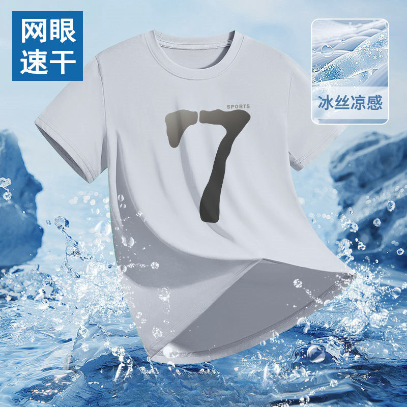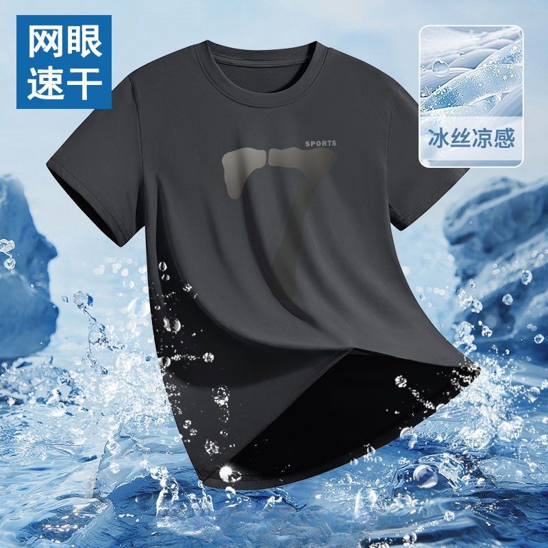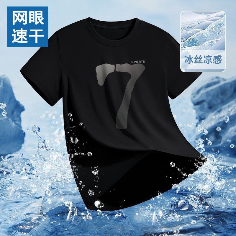 Мужская летняя новая дышащая сетчатая футболка из ледяного шелка с короткими рукавами, красивая свободная футболка большого размера с половиной рукавов, футболка, топ