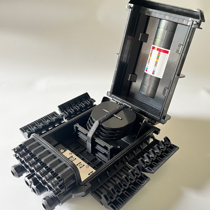适用于FTTH网络 电信网络 数据通信网络 局域网等 ,产品由优质工程塑料注塑成型,能容纳安装0.9, 2.0 ,3.0 , 12根皮线光缆,有3根光缆入口和2根光缆(皮线光缆)出口,可室内壁挂式安装和室外壁挂式或抱箍式条件下使用.