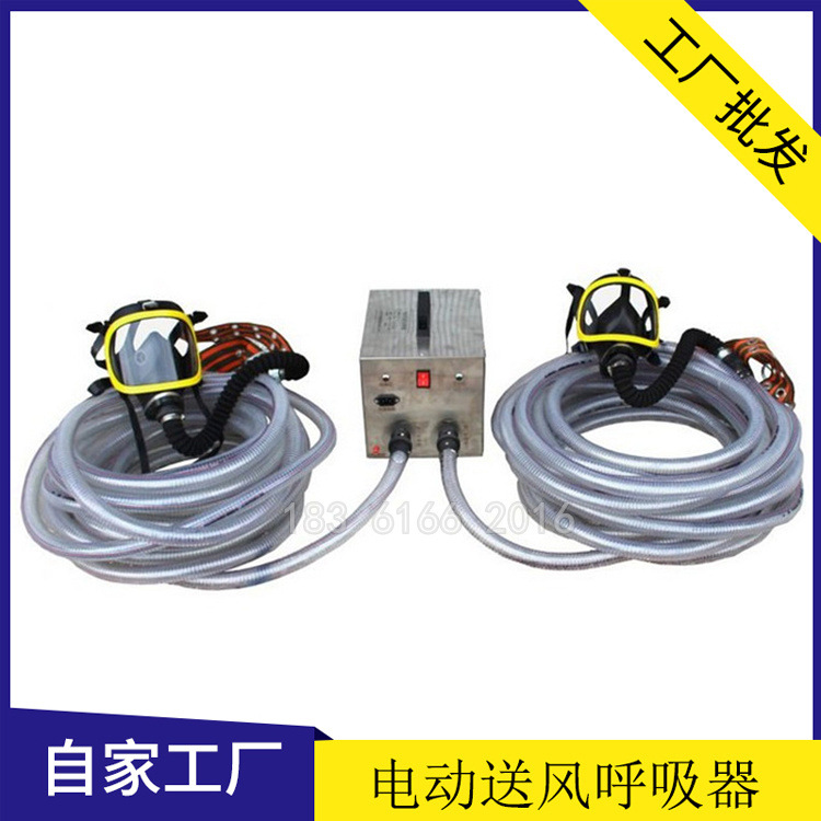 1. 产品是通过送风机不断地给工作者提供新鲜空气的呼吸器,4人使用的长管呼吸器;