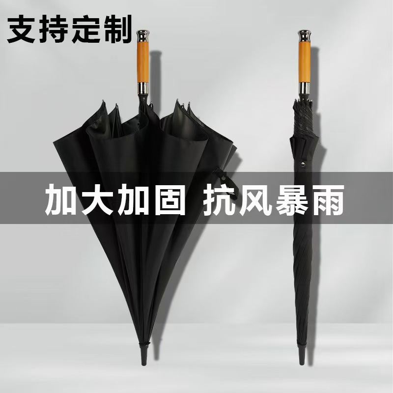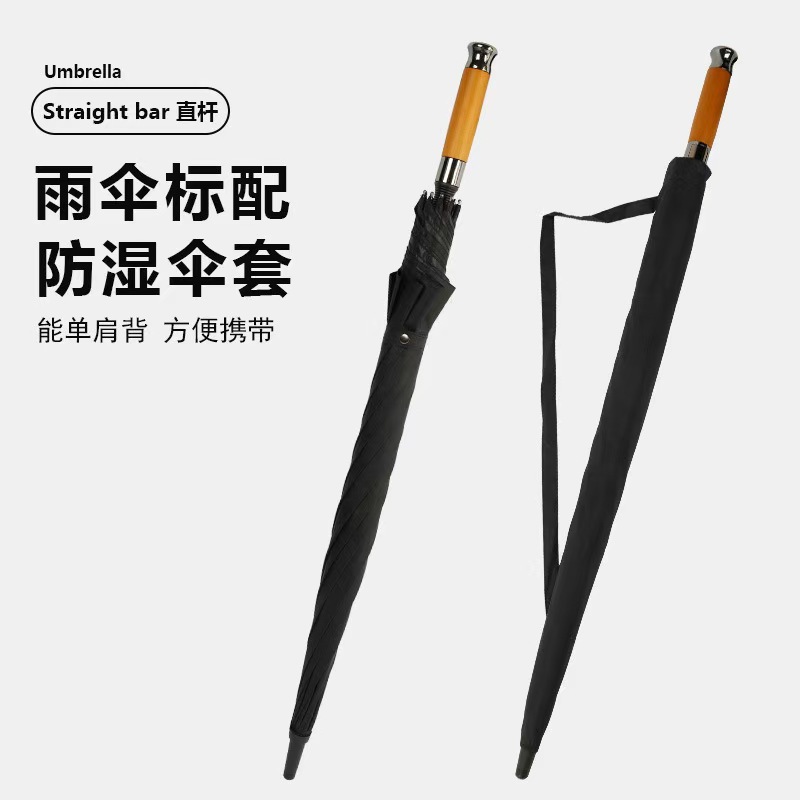 Зонт с длинной ручкой, прямой автоматический открывания, ручка из массива дерева, каркас из волокна, рекламный зонт для гольфа, логотип можно настроить