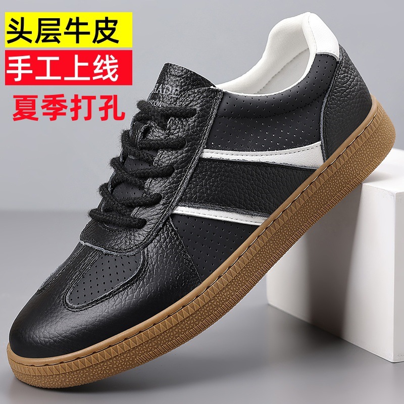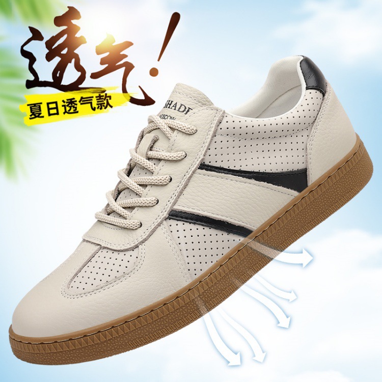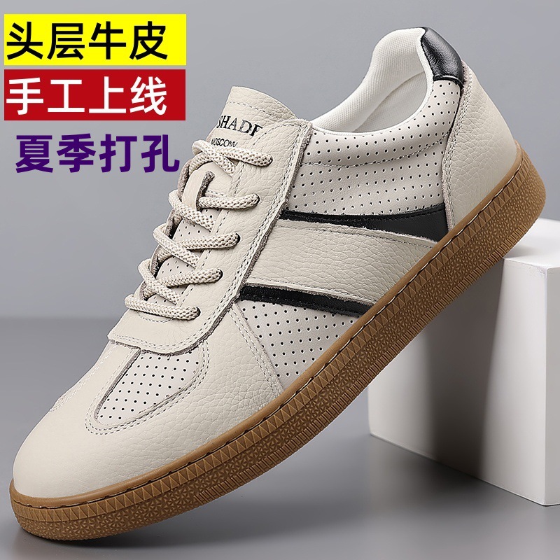 Листья из коровьей кожи полые дышащие летние мужские кроссовки модные маленькие белые туфли износостойкие мягкие кожаные туфли