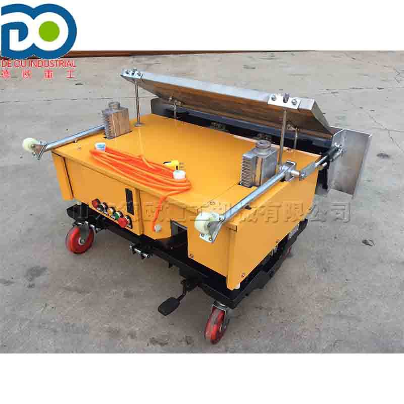 全自动粉墙机可以完全抹到顶。一毫米不留,阴阳角均可施工到位。而且定位牢,定位快,以垂直平整固定。利用两根支子与传统打点结合解决了激光定位慢,定位难,误差大的问题。利用振动器和加大抹板解决了人工抹墙容易出现空鼓,裂痕的问题。本机具有操作简便,造型美观,运行平稳,结实耐用,移动方便,定位快,无需拆卸等优点。大大提高了材料的利用率和工程进度。