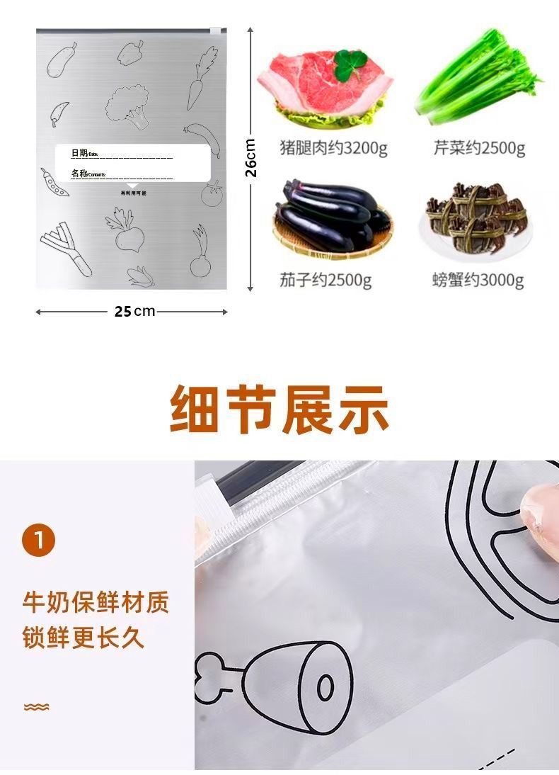 Сумка для хранения свежих продуктов, пищевая герметичная сумка с двойными ребрами, бытовая сумка на молнии для хранения в морозильной камере, многофункциональный холодильник, специальная герметичная сумка