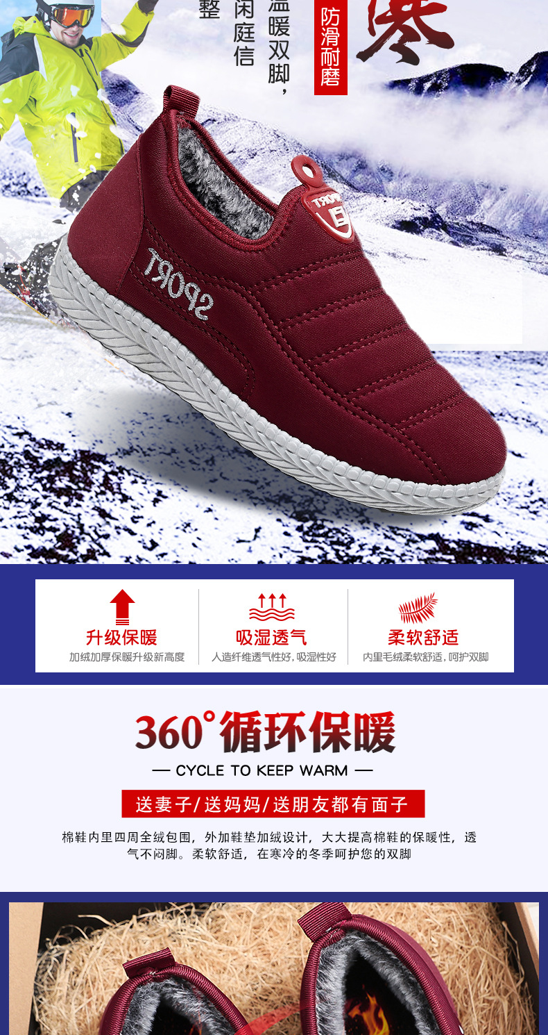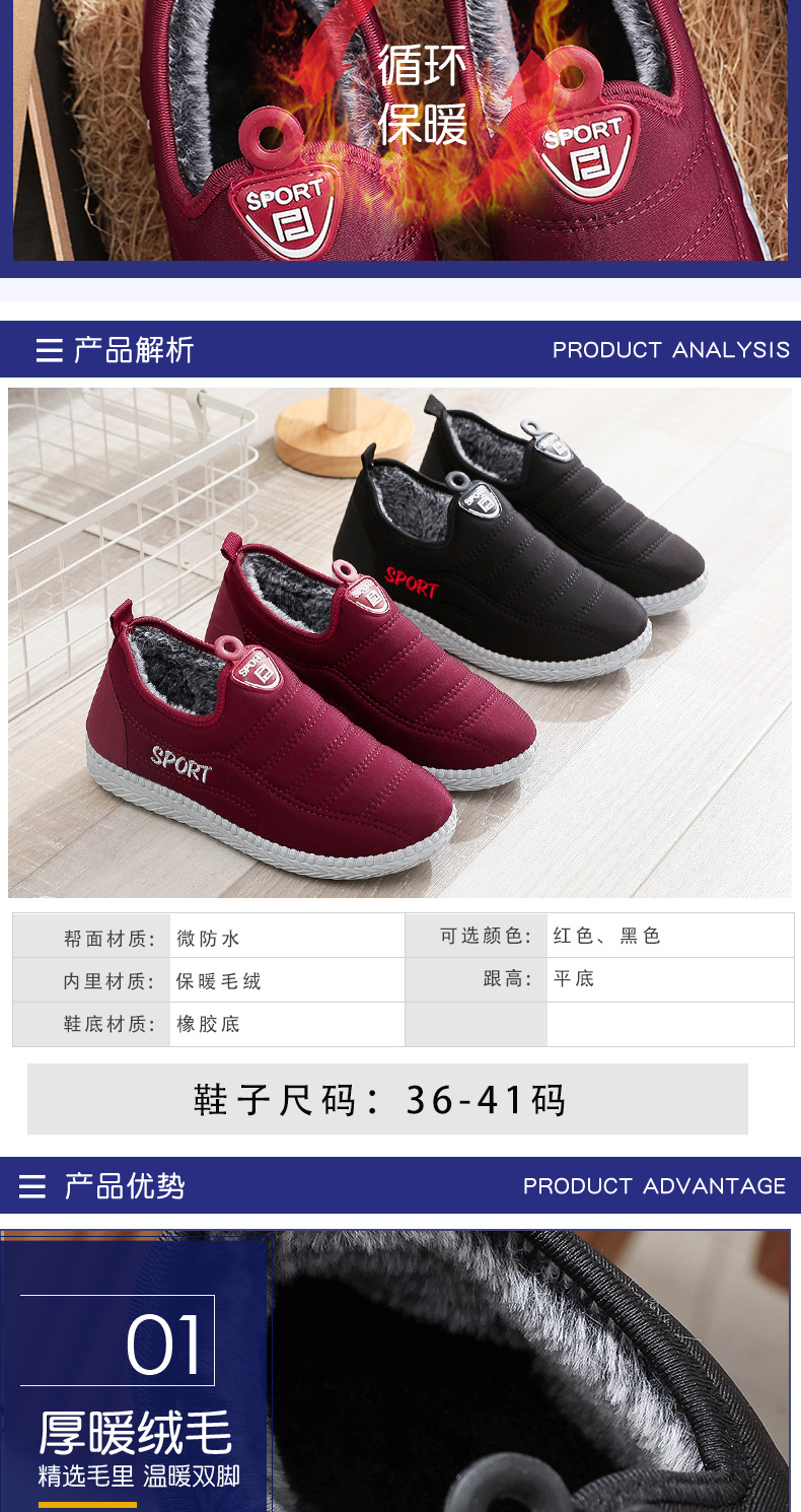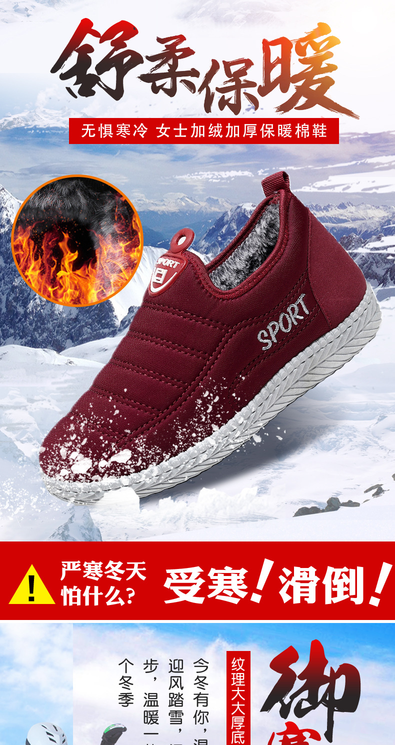 Женская хлопчатобумажная обувь, старая пекинская тканевая обувь, водонепроницаемая, утолщенная, теплая и нескользящая, повседневные спортивные зимние ботинки для мам среднего и пожилого возраста.
