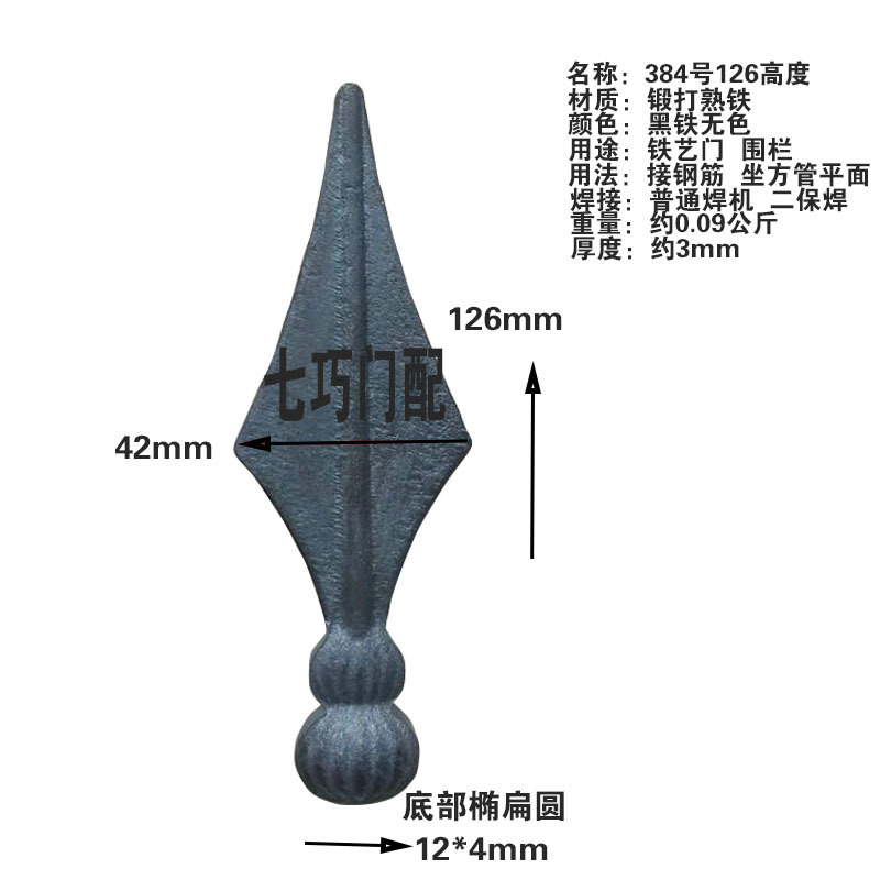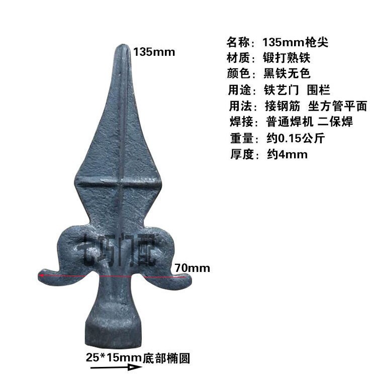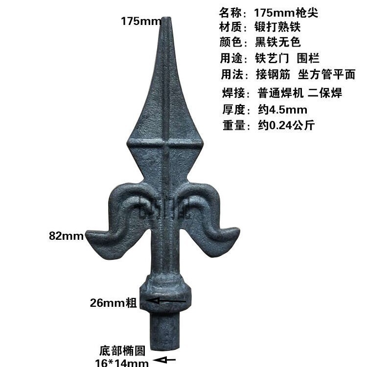 Полный набор железных аксессуаров, массивное кованое железо, железный заостренный наконечник для дверного забора, наконечник пистолета, сварной незалегающий наконечник из железа.