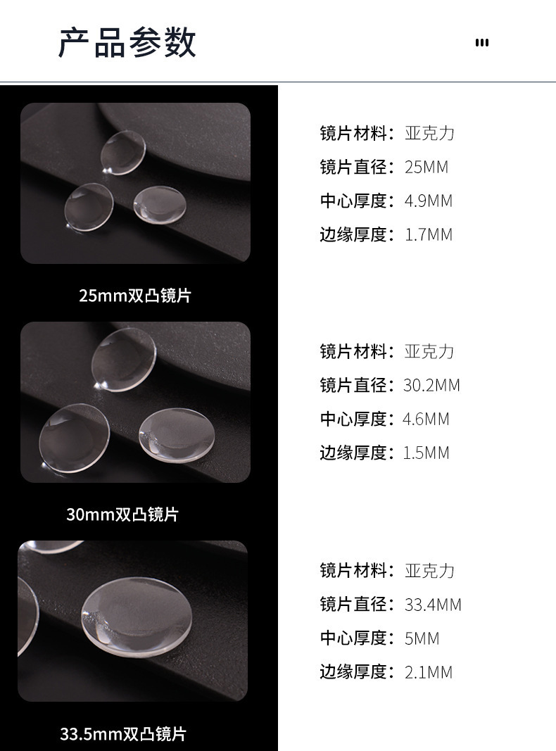 Пластиковая увеличительная линза, оптическая стеклянная линза, биконвексная линза для телескопа, линза для микроскопа, плоско-выпуклая линза, одинарная выпуклая акриловая линза