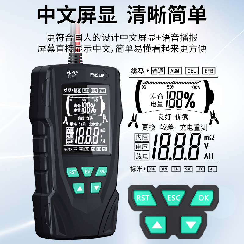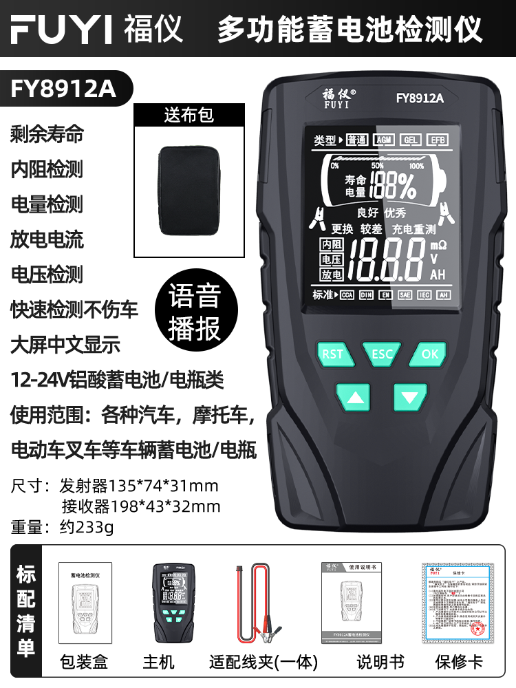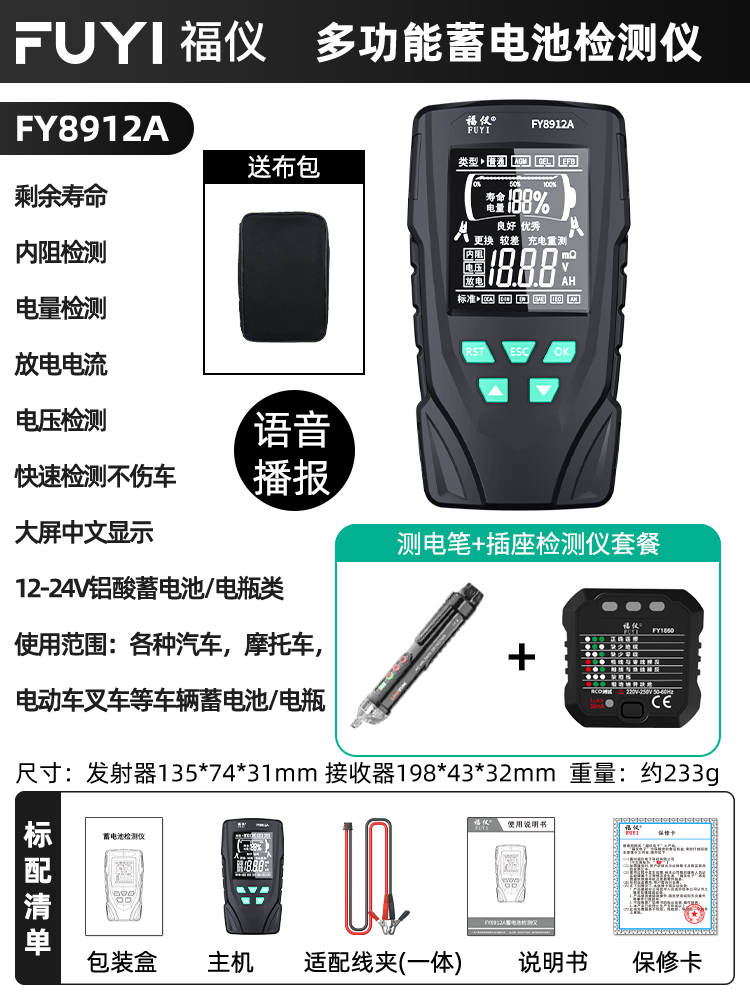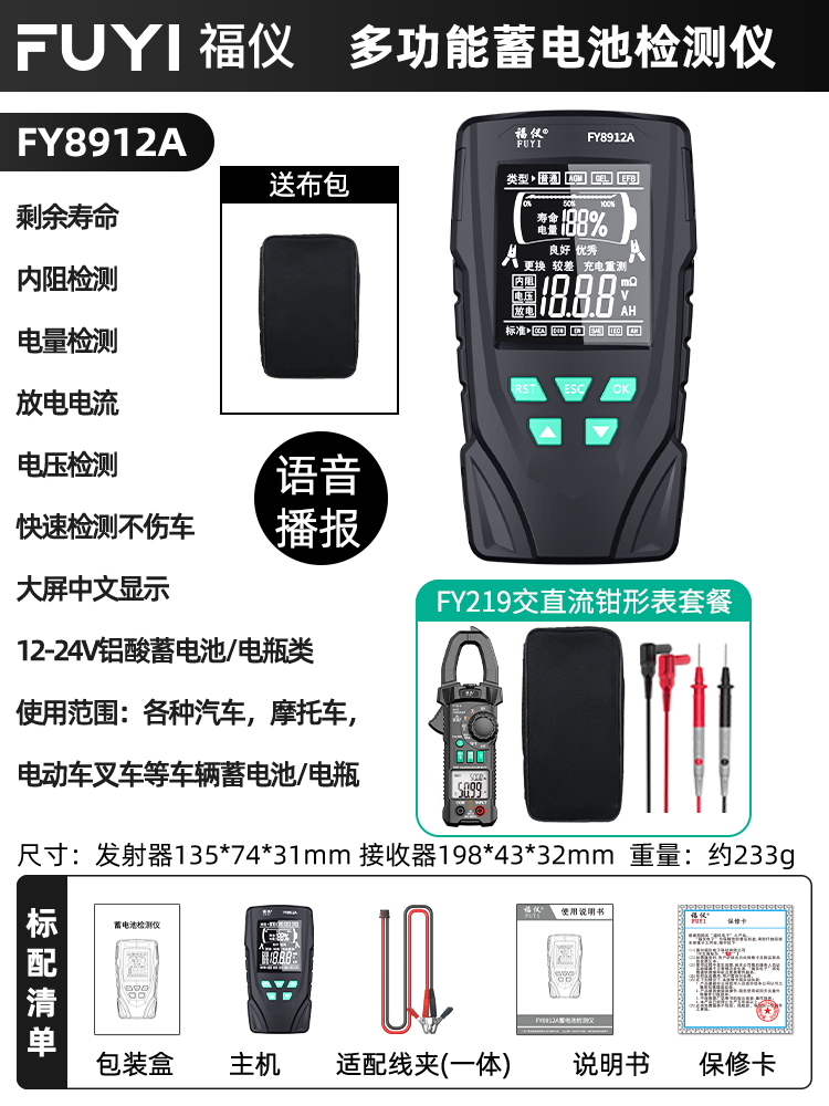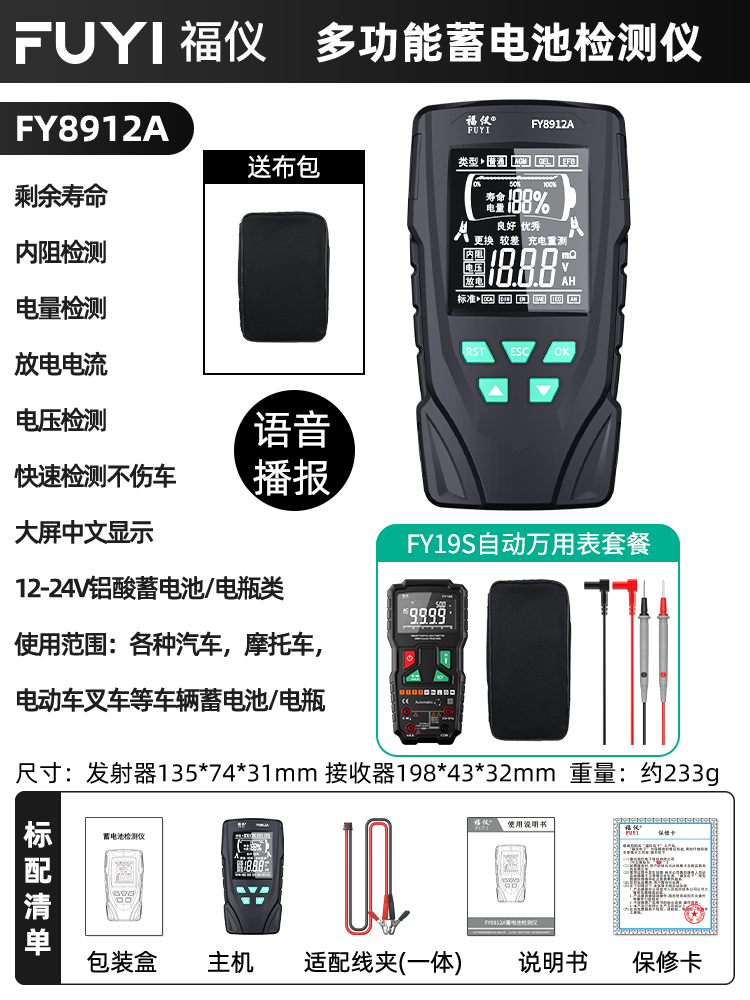 Тестер батареи FY8912A [12 В/24 В] голосовое сообщение о быстром обнаружении; FY8912A тестер батареи [12 В/24 В] голосовая трансляция + ручка + тестер розеток; Тестер батареи FY8912A [12 В/24 В] голосовая трансляция + интеллектуальный мультиметр FY19S; Тестер батарей FY8912A [12 В/24 В] голосовая трансляция + клещи переменного и постоянного тока FY219