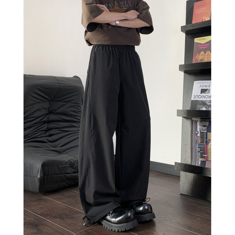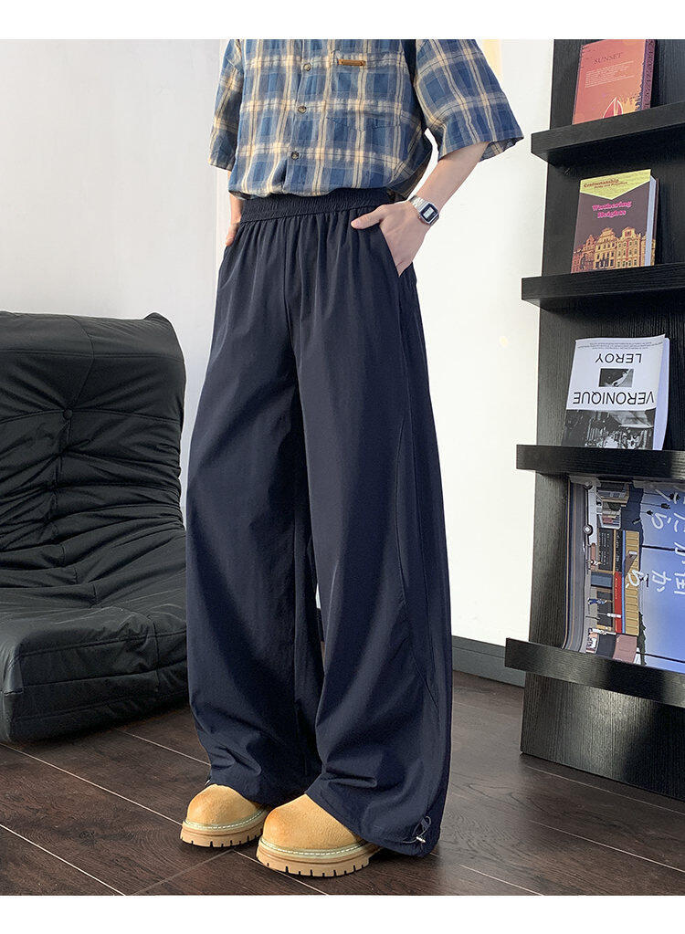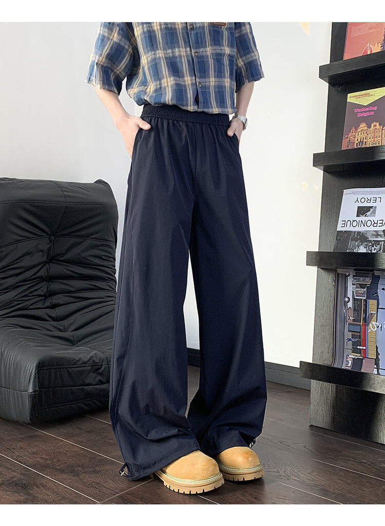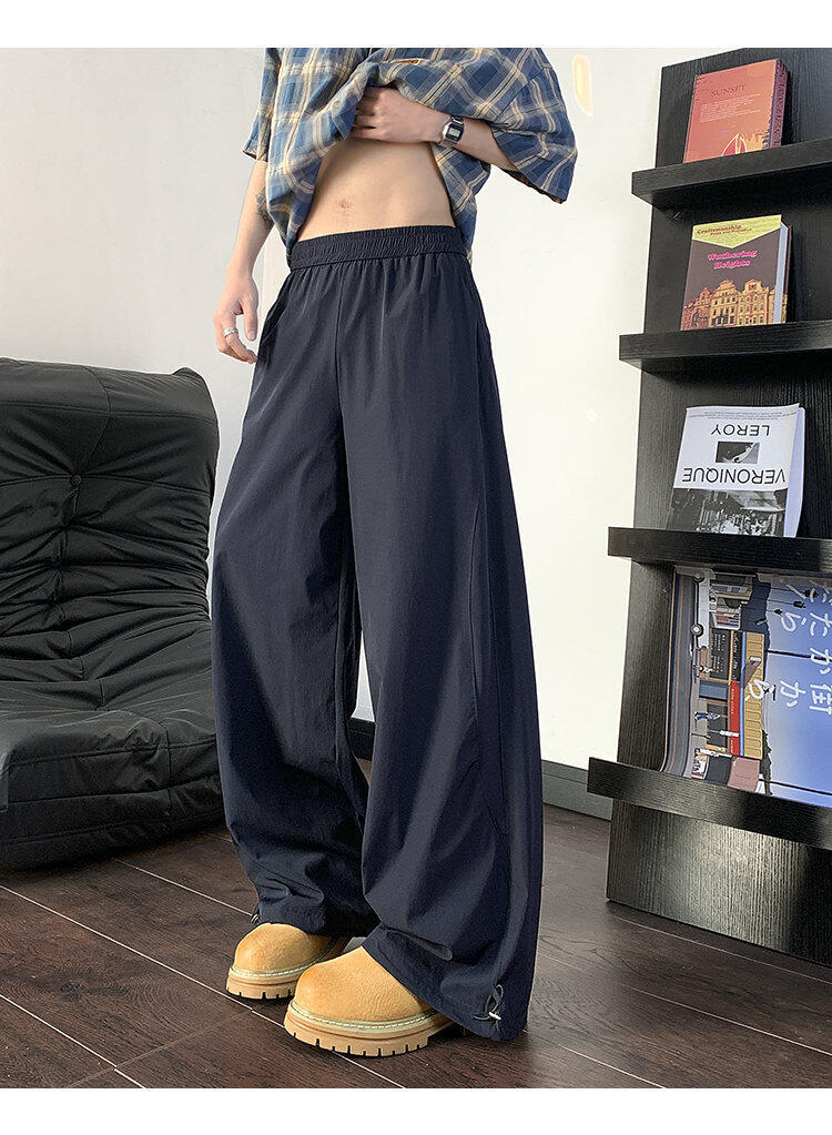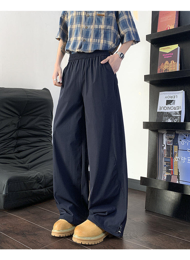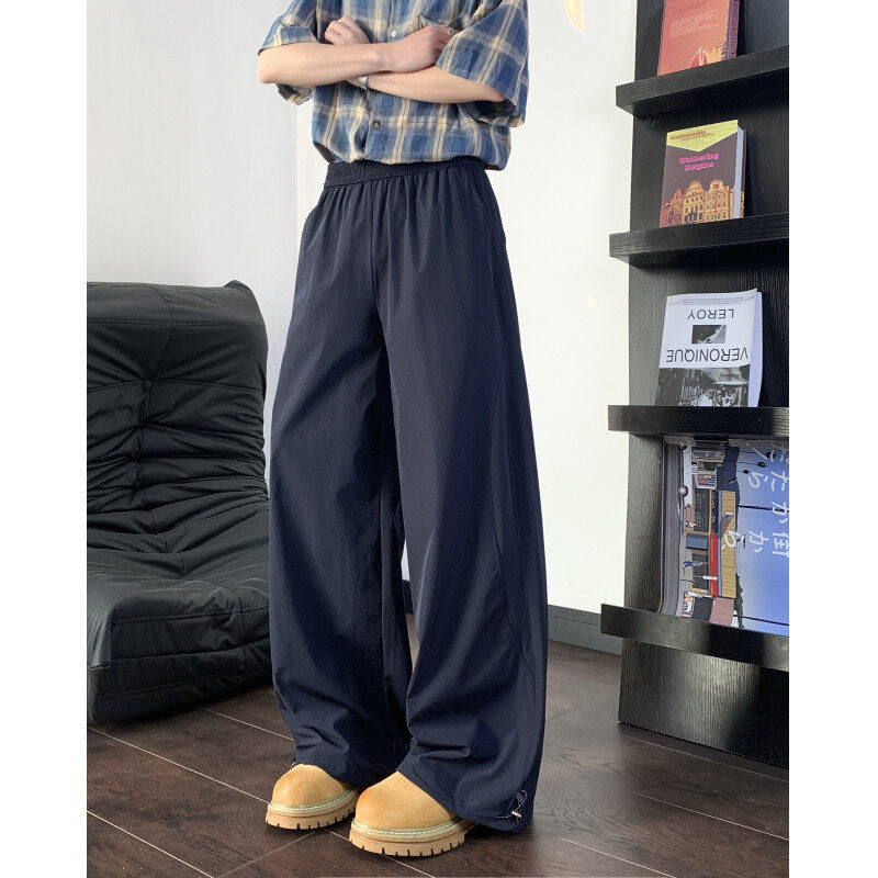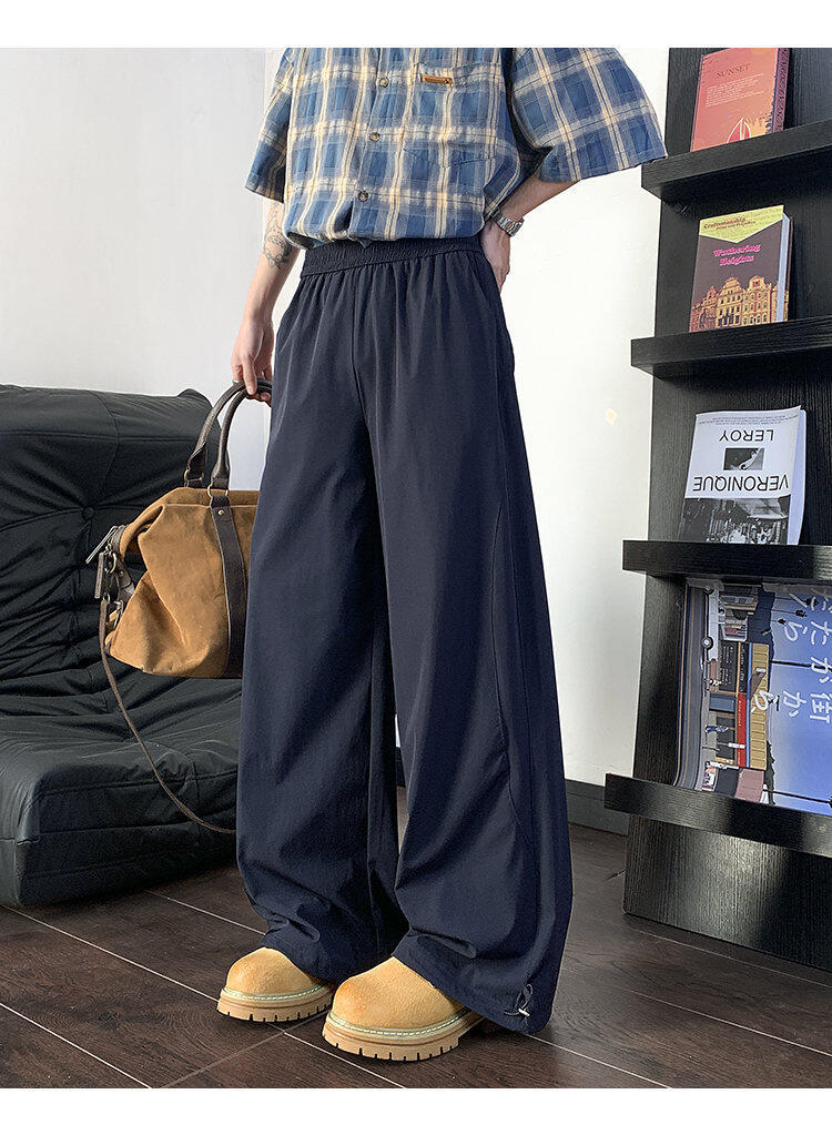 Летние темно-синие брюки-карго с косым краем 2025 года, мужские мягкие брюки-карго, стильные свободные широкие брюки с чистым кроем