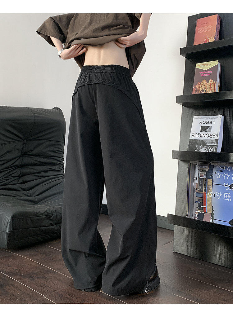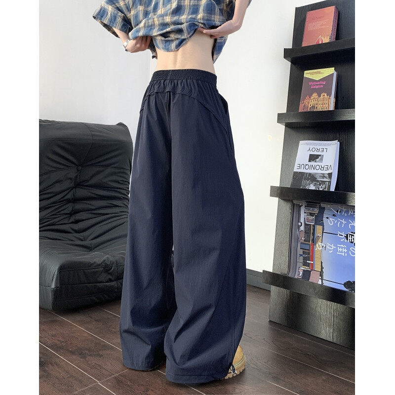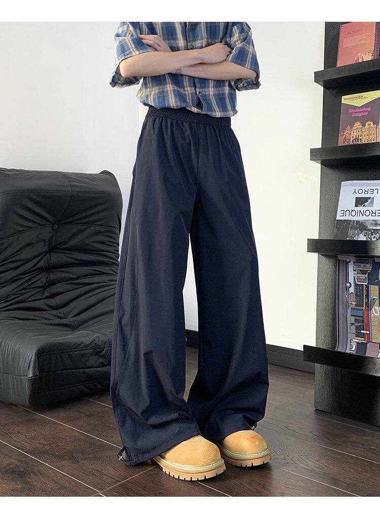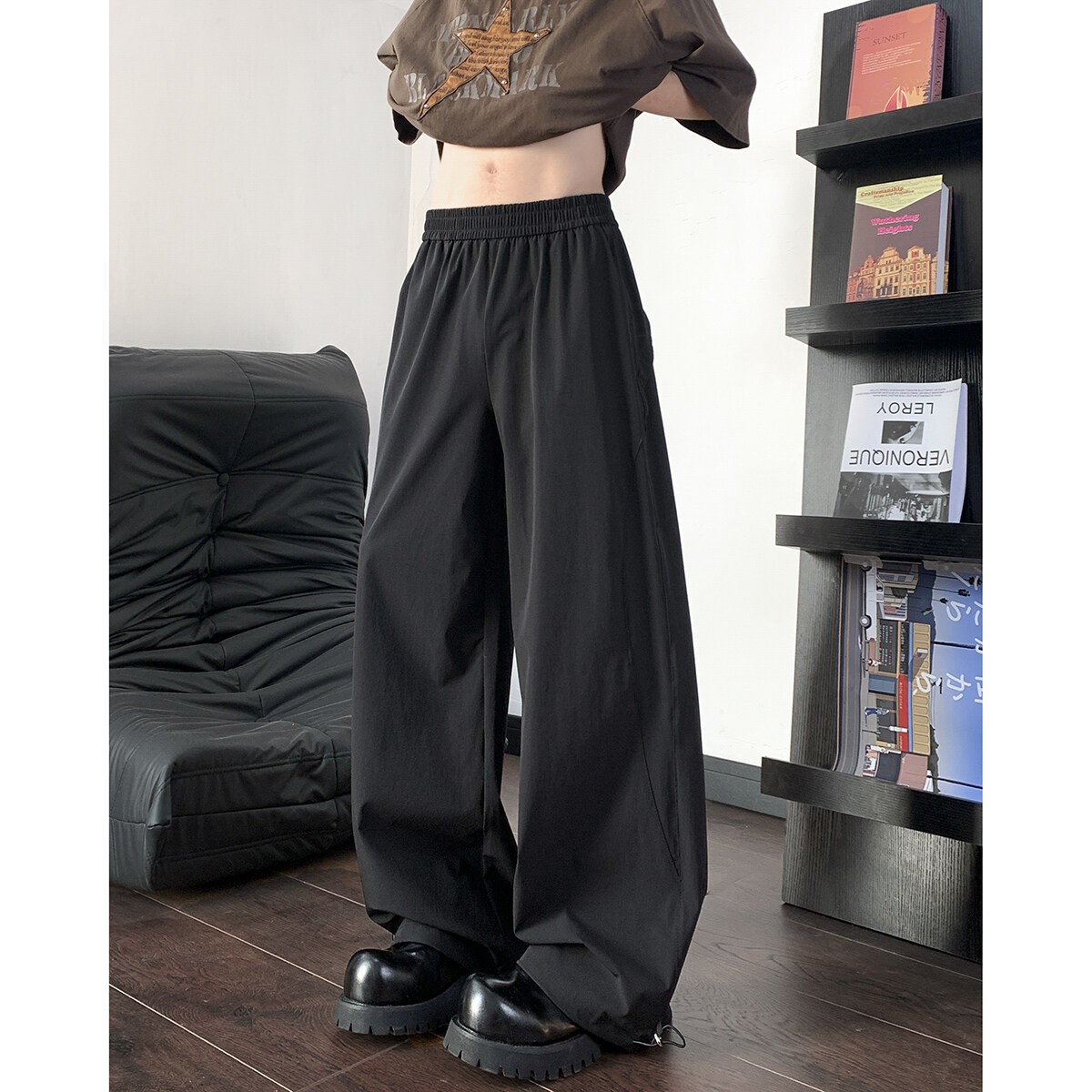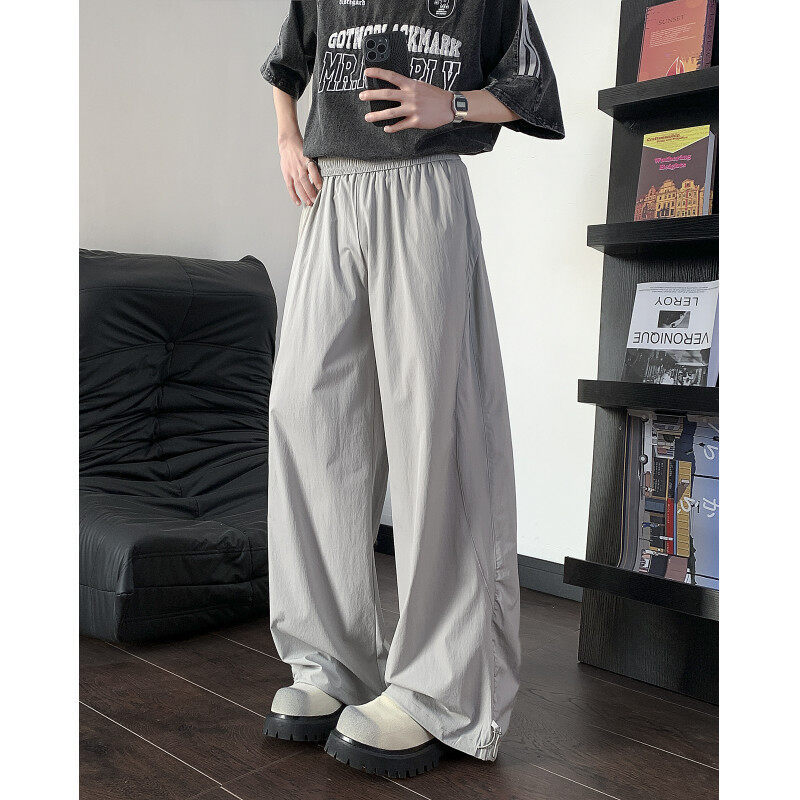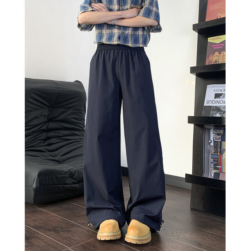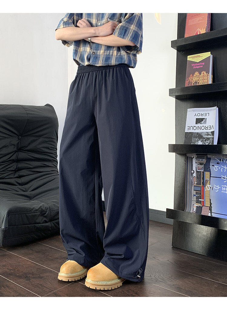 Летние темно-синие брюки-карго с косым краем 2025 года, мужские мягкие брюки-карго, стильные свободные широкие брюки с чистым кроем