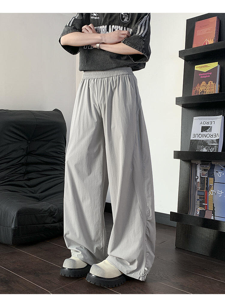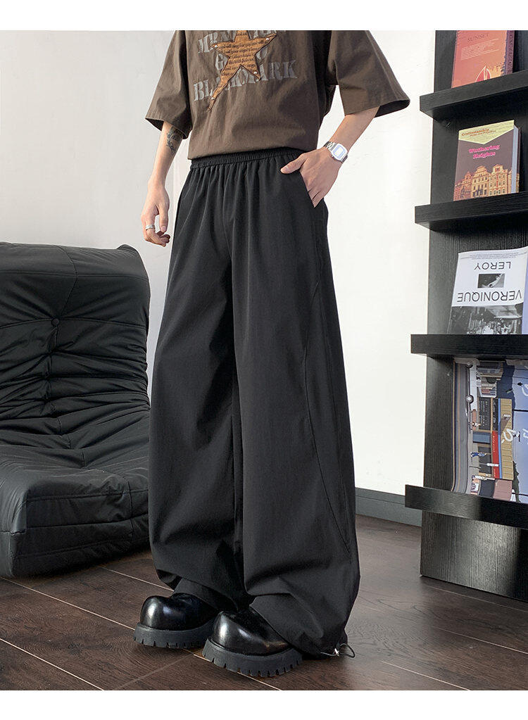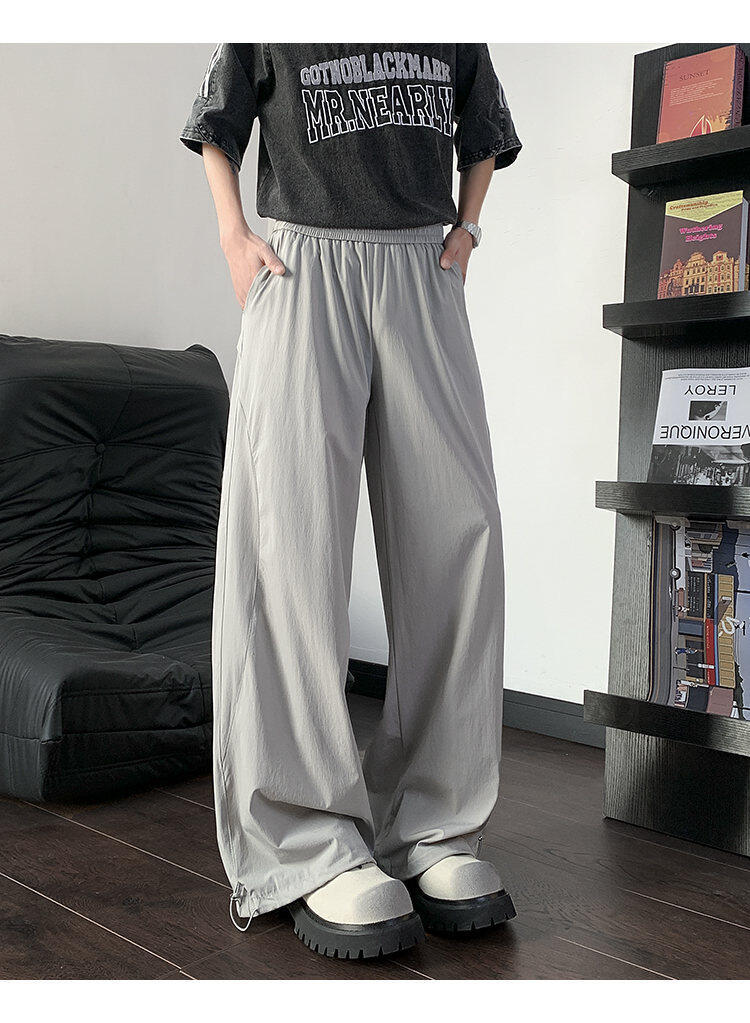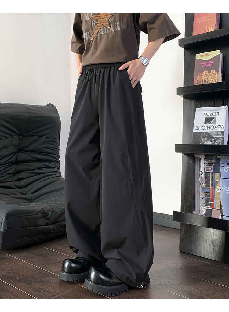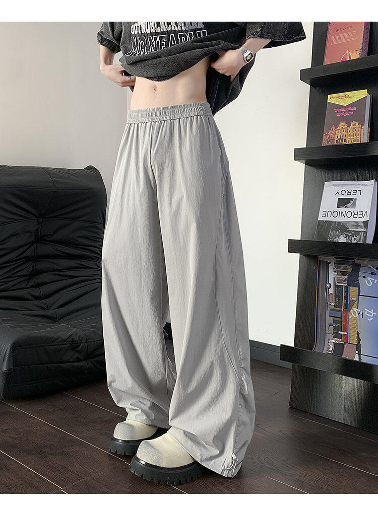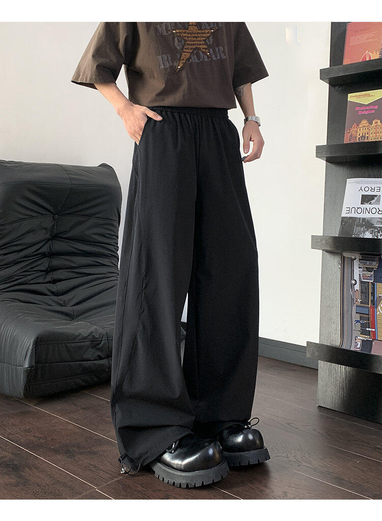 Летние темно-синие брюки-карго с косым краем 2025 года, мужские мягкие брюки-карго, стильные свободные широкие брюки с чистым кроем