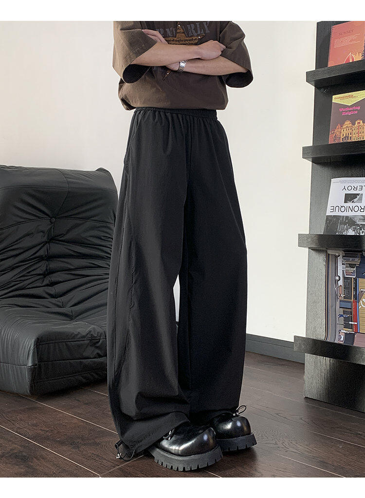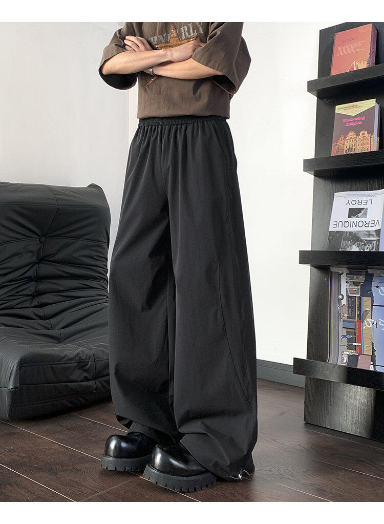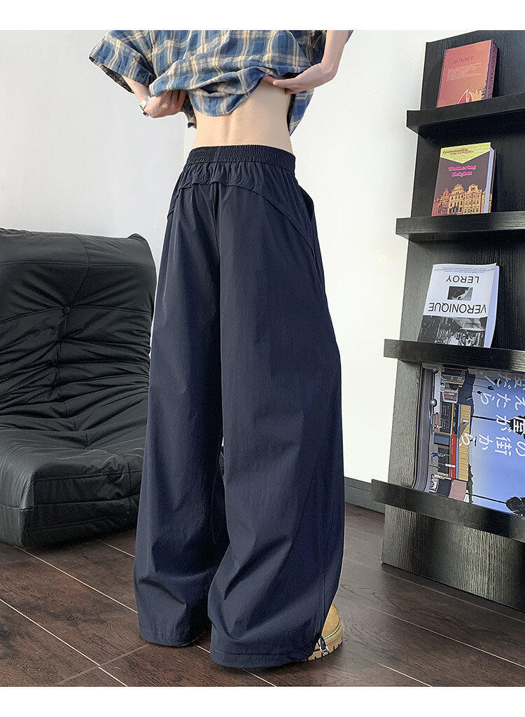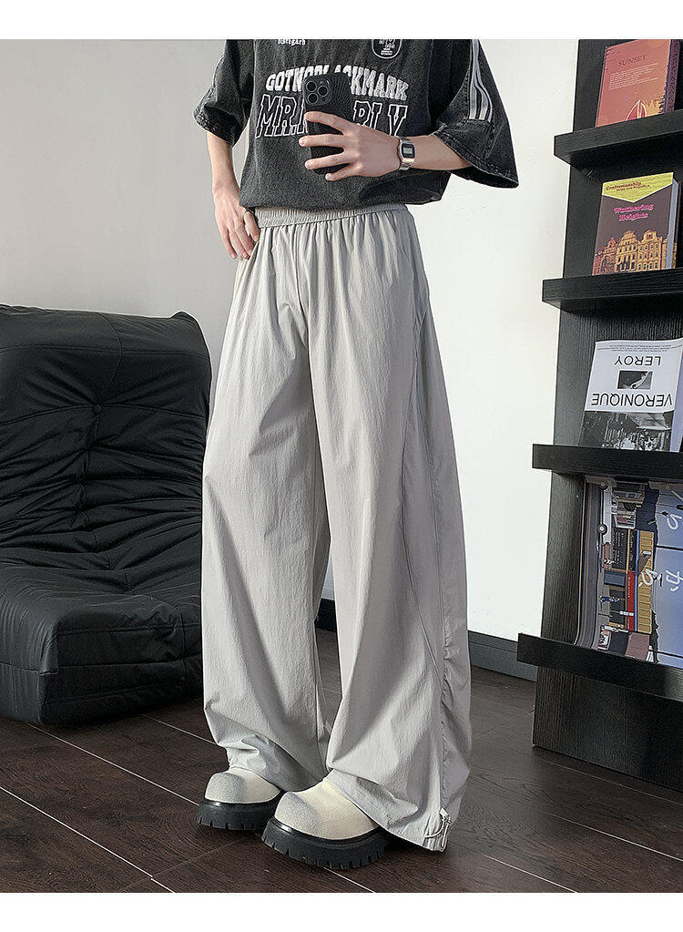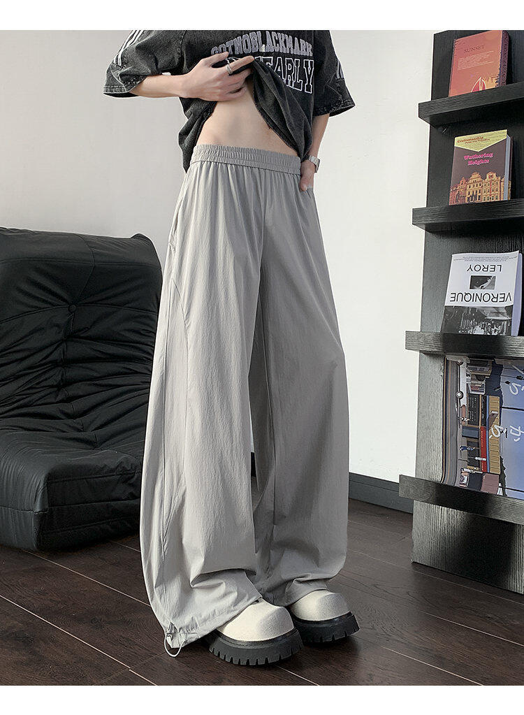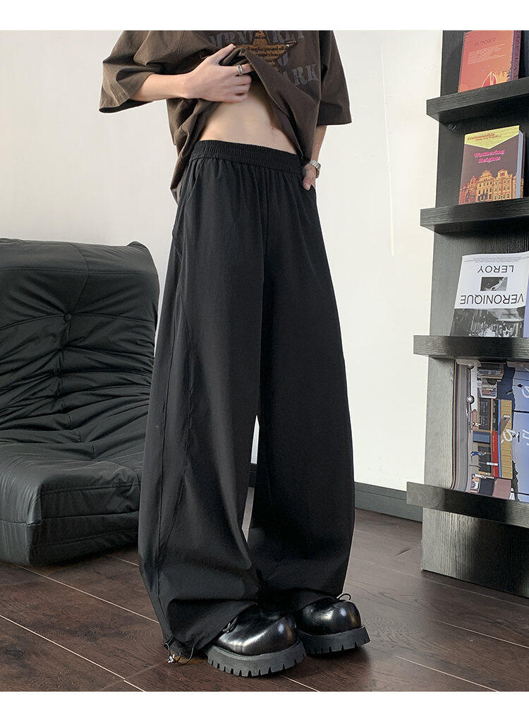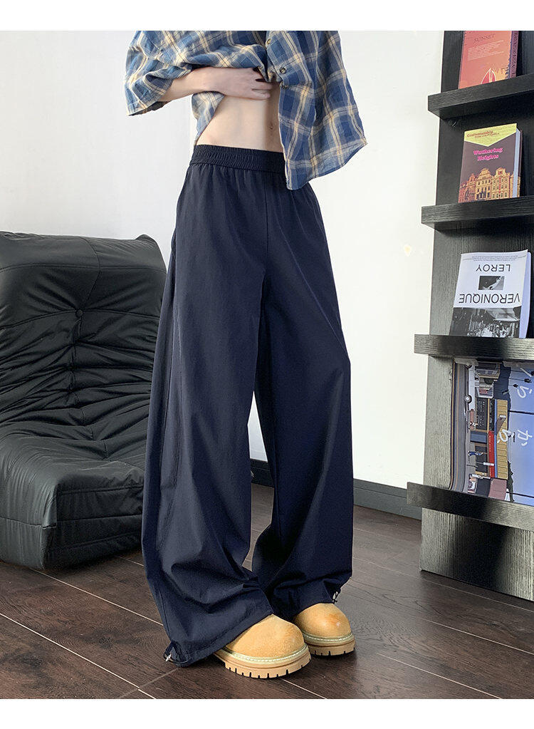 Летние темно-синие брюки-карго с косым краем 2025 года, мужские мягкие брюки-карго, стильные свободные широкие брюки с чистым кроем