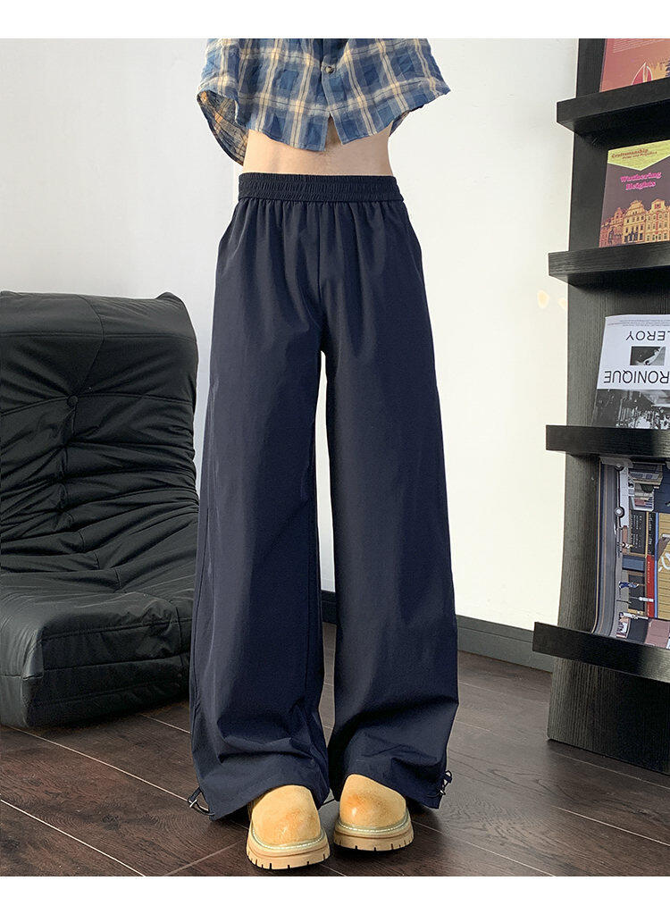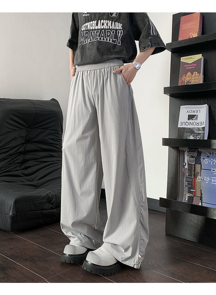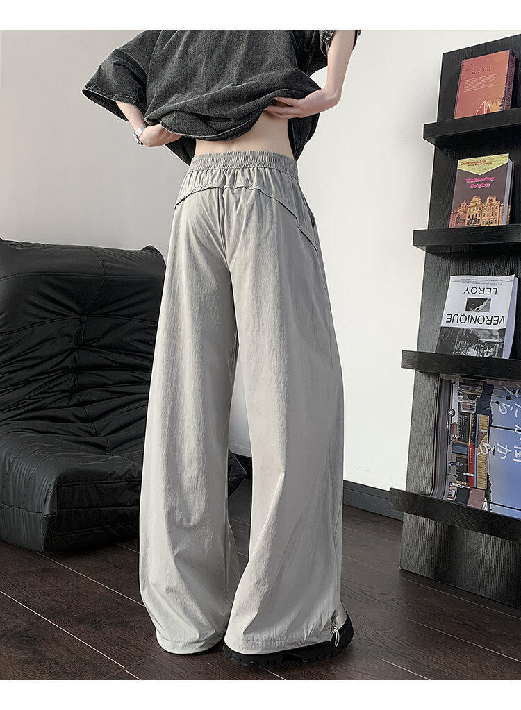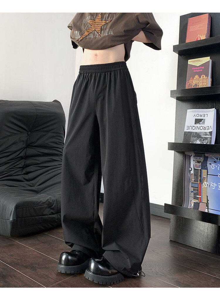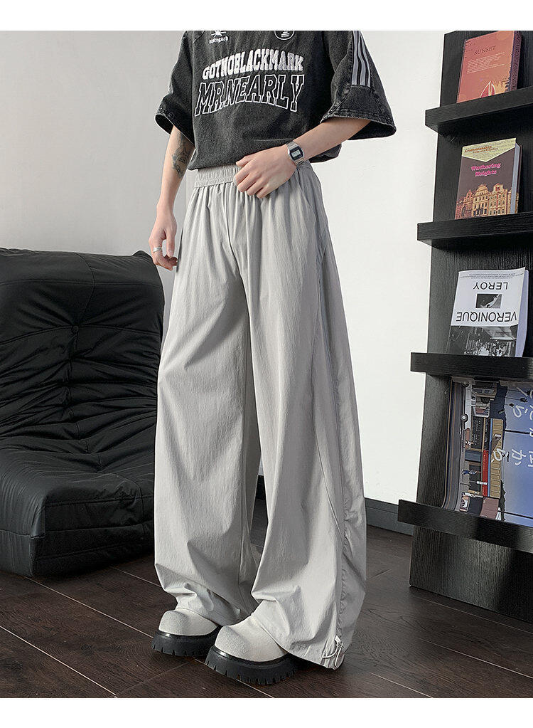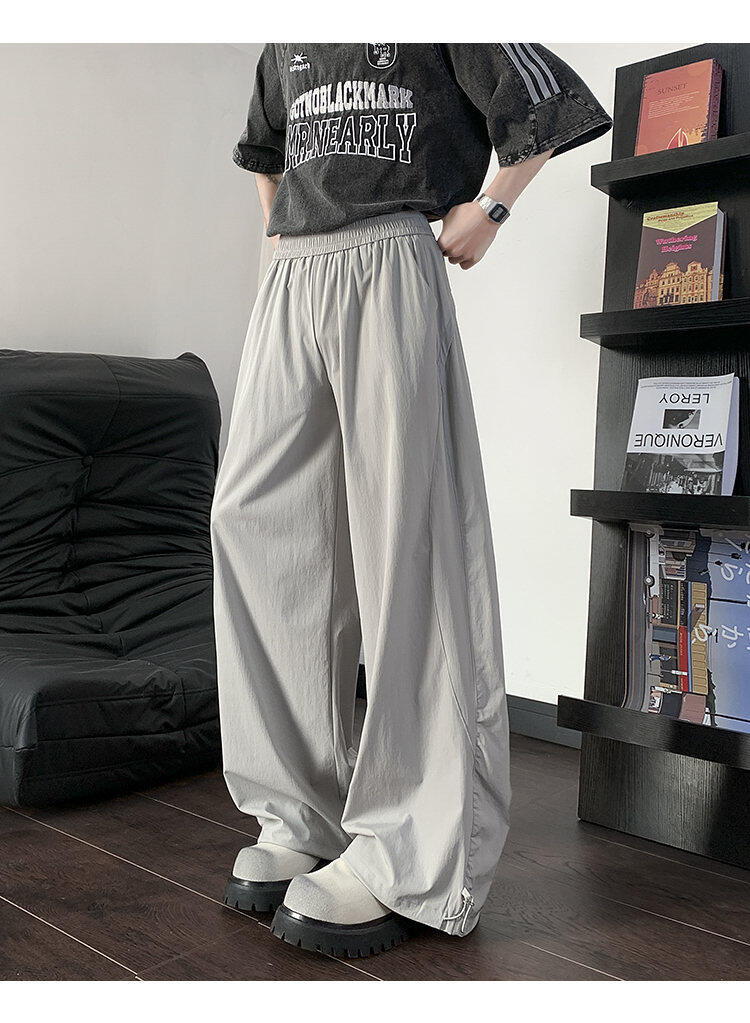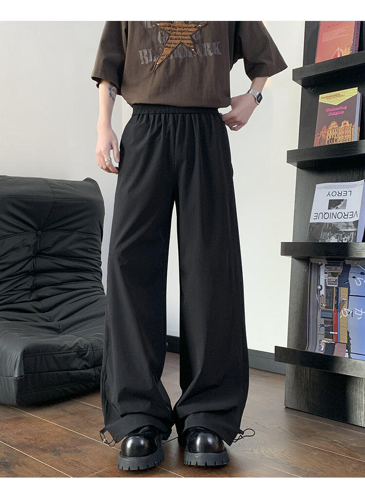Летние темно-синие брюки-карго с косым краем 2025 года, мужские мягкие брюки-карго, стильные свободные широкие брюки с чистым кроем