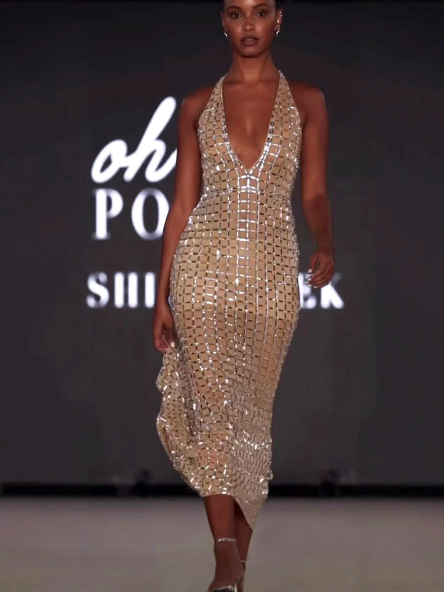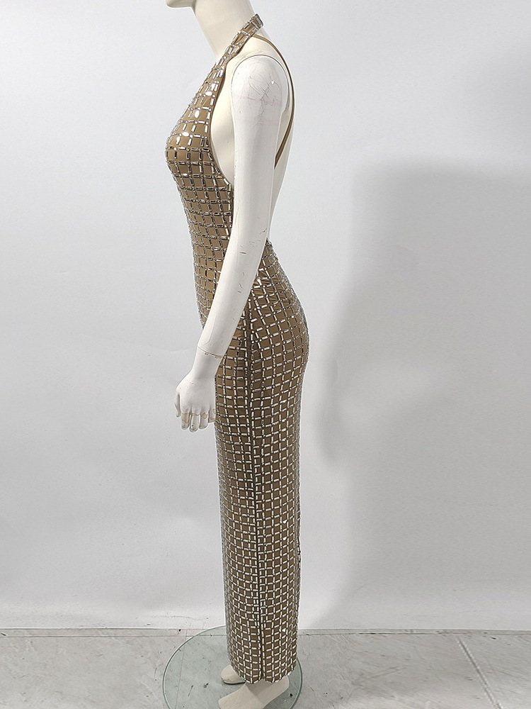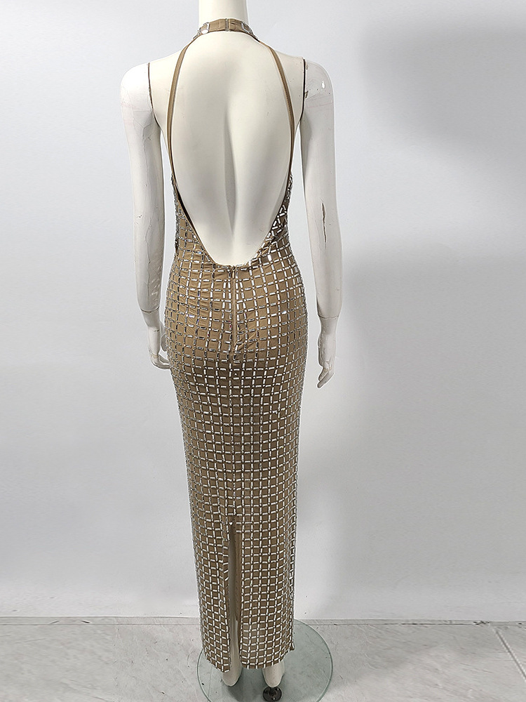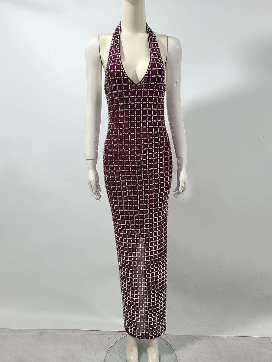 Европейское и американское женское модное новое сексуальное облегающее платье с открытой спиной и стразами на бретельках и глубоким v-образным вырезом