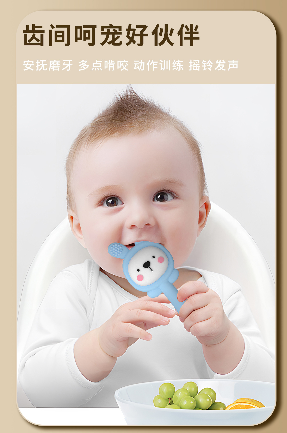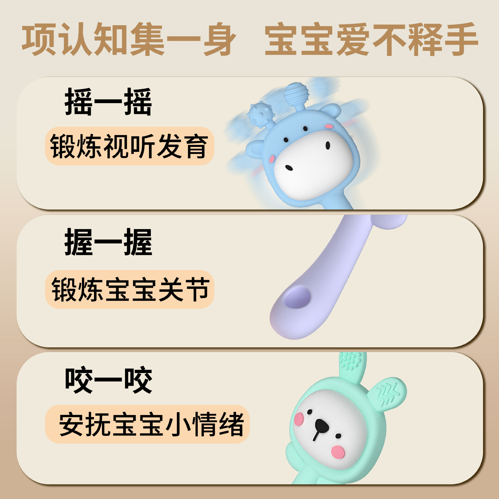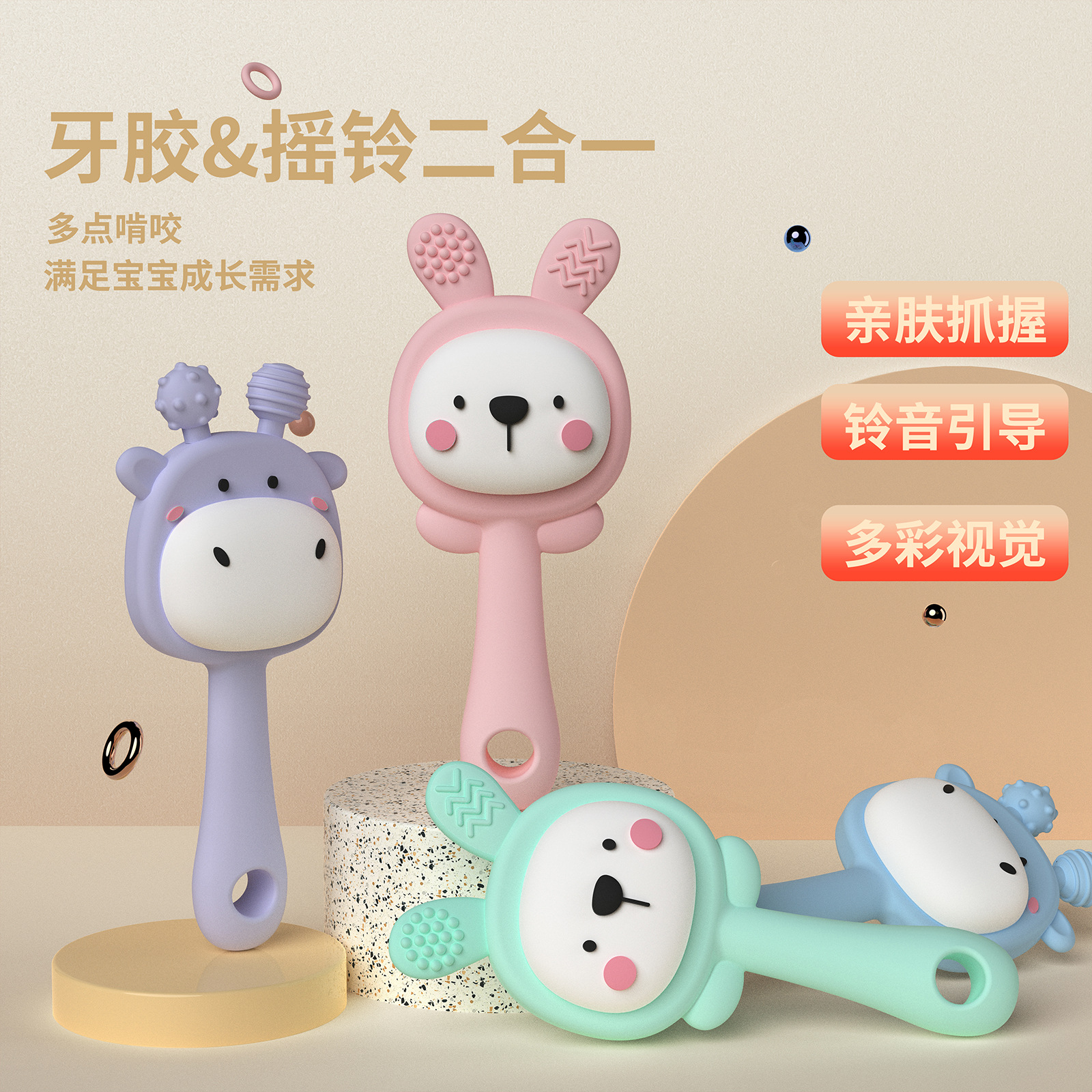 Новая погремушка-прорезыватель для новорожденных Amazon, детская жевательная пищевая силиконовая жевательная игрушка-погремушка