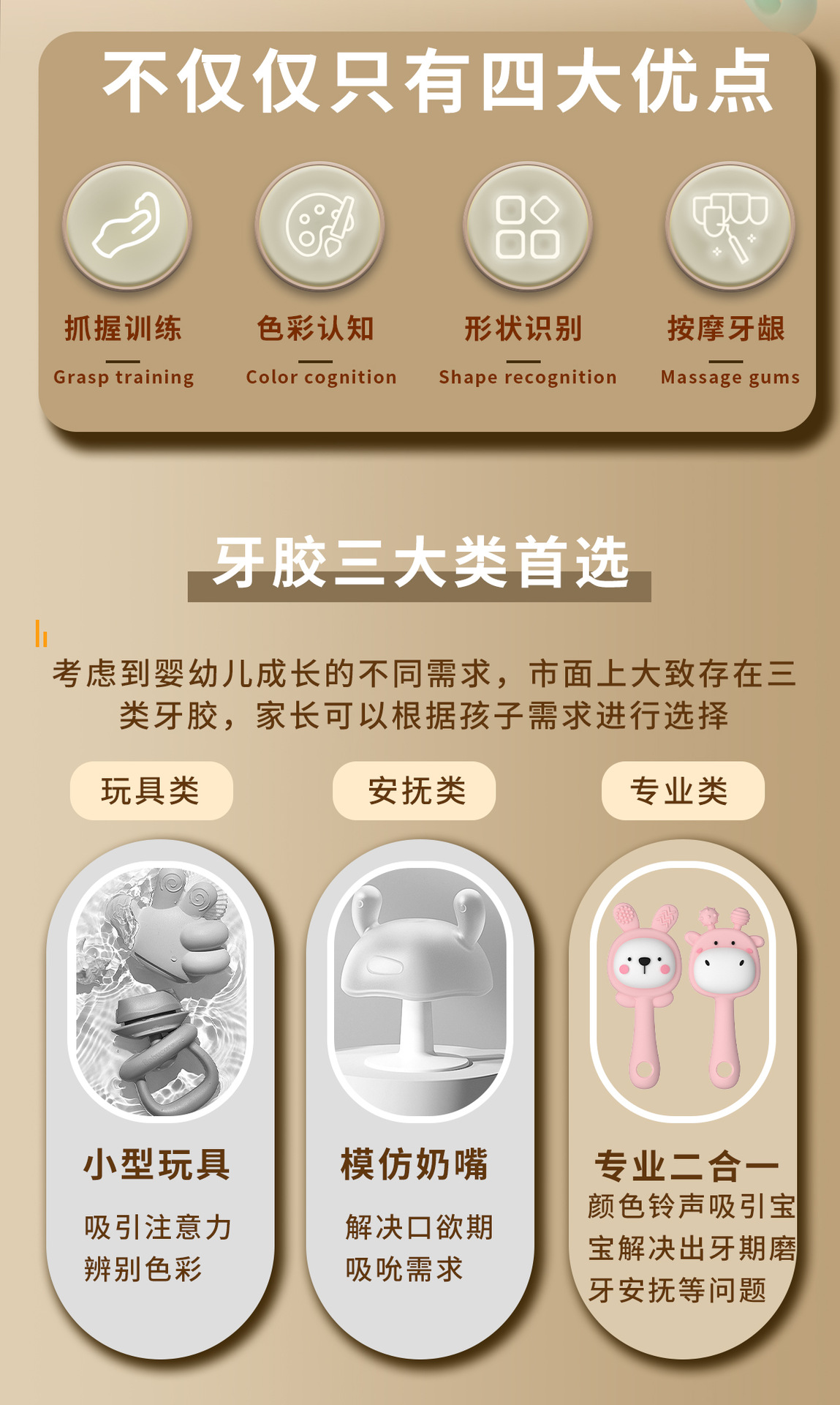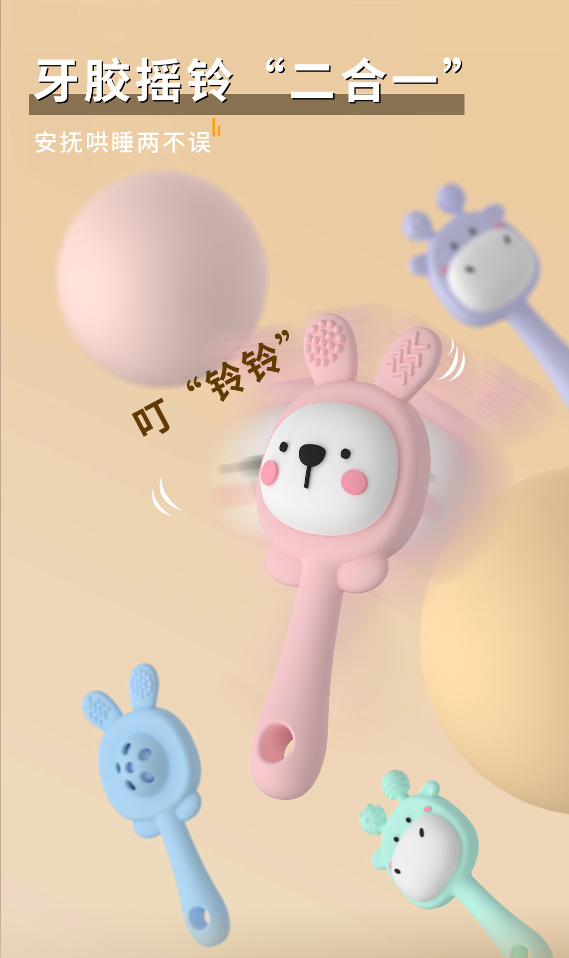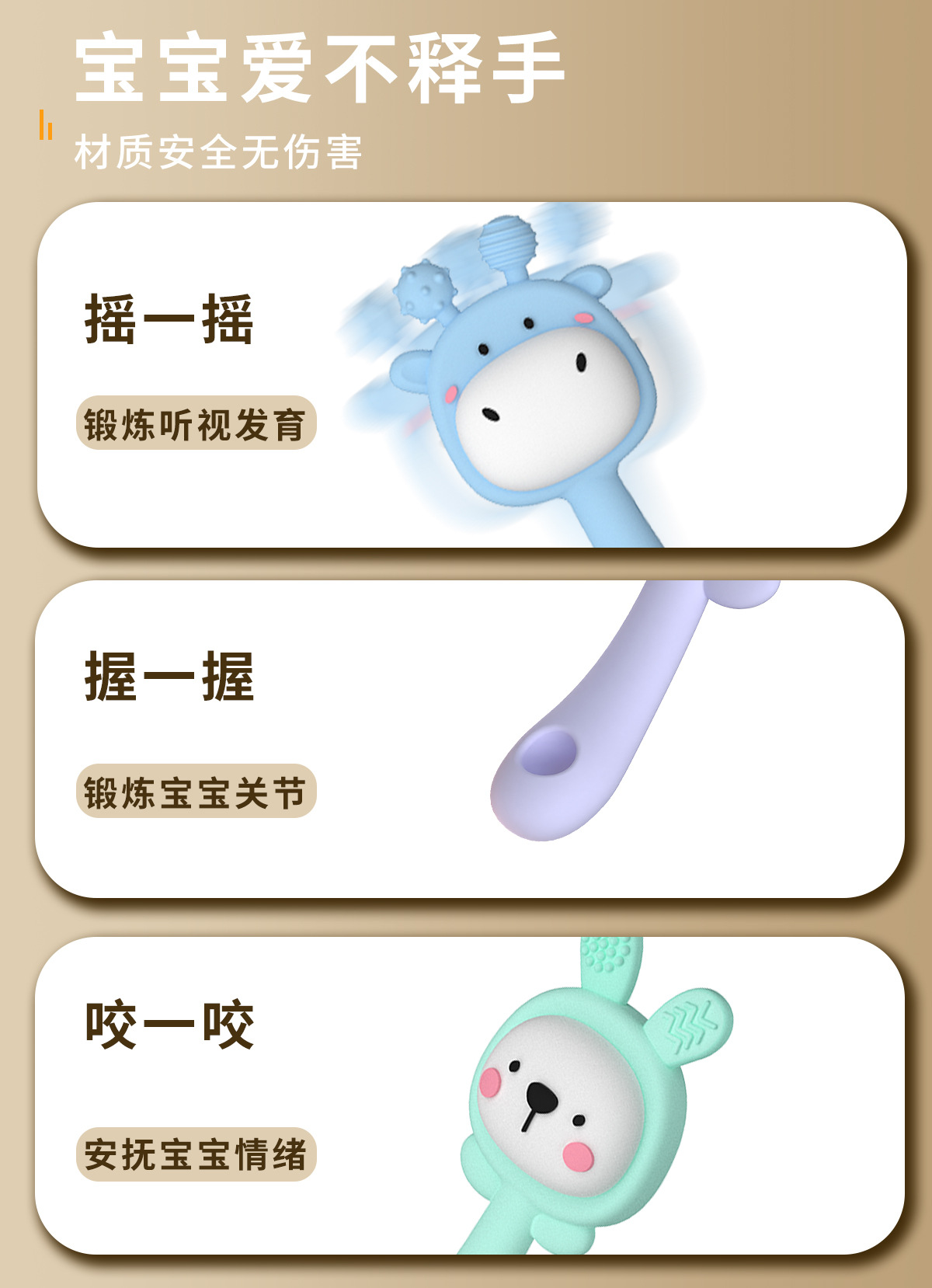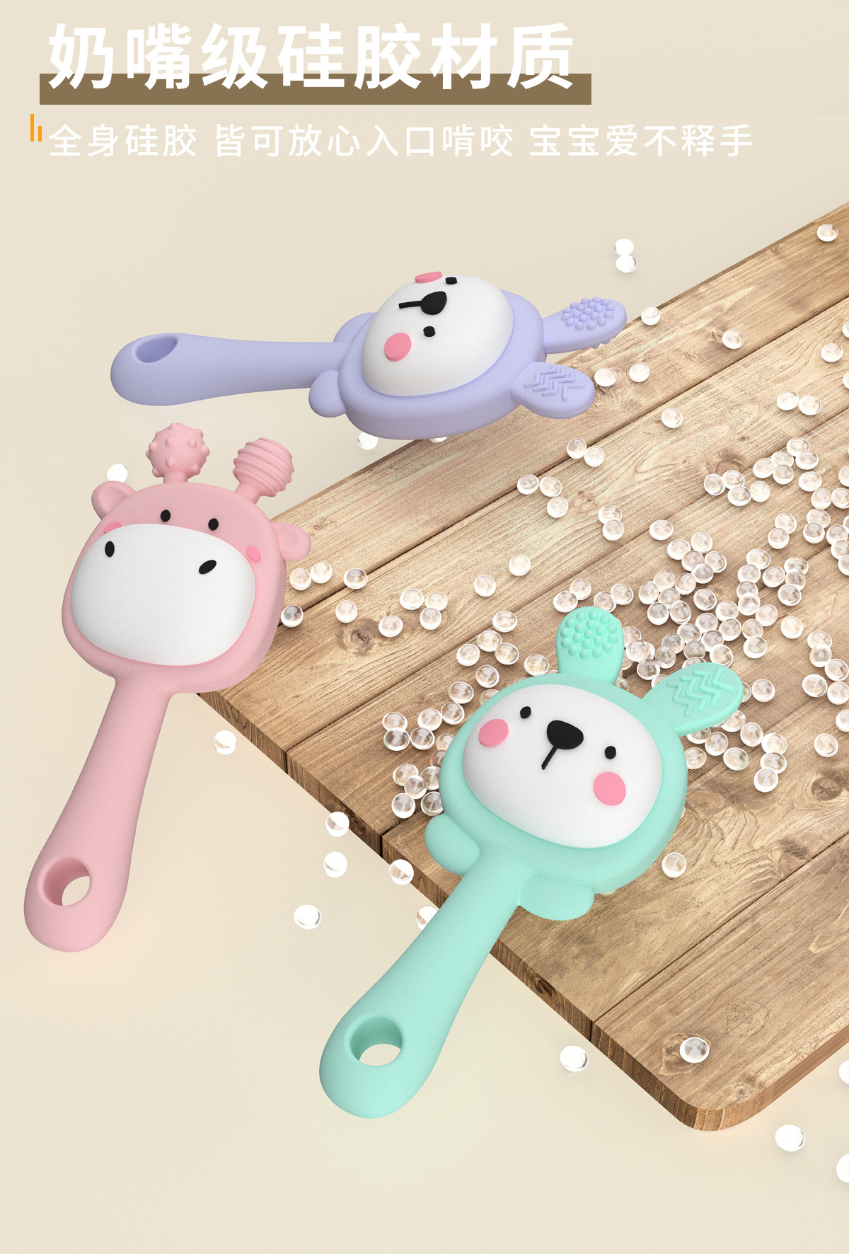 Новая погремушка-прорезыватель для новорожденных Amazon, детская жевательная пищевая силиконовая жевательная игрушка-погремушка
