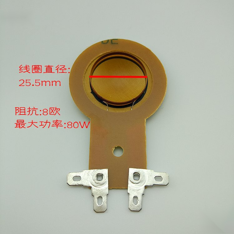 25,5 мм круглая проволока, смоляная пленка, длинная рамка, твитер, звуковая катушка 8 Ом, 40-80 Вт, хорошее качество и хороший высокочастотный отклик