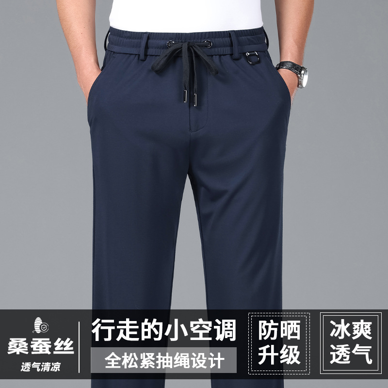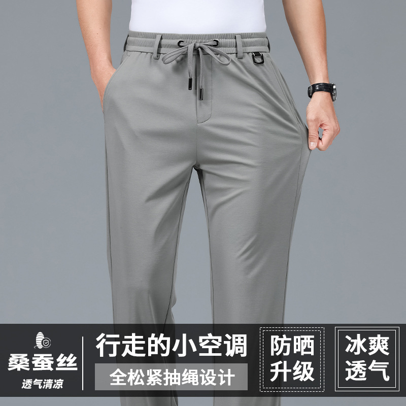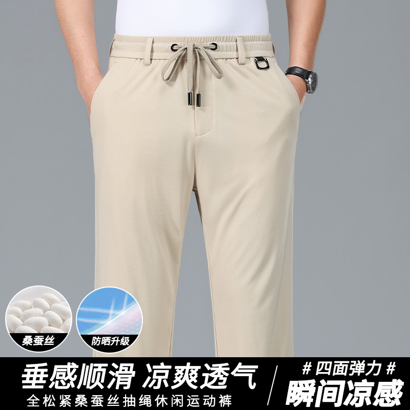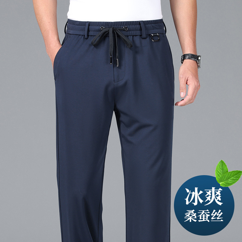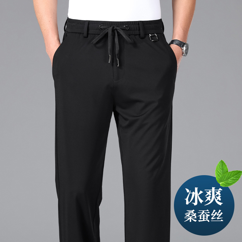 2025 новых шелковых высокоэластичных деловых брюк, полностью эластичный шнурок, антибактериальные и дышащие, незаменимые для летней прохлады.