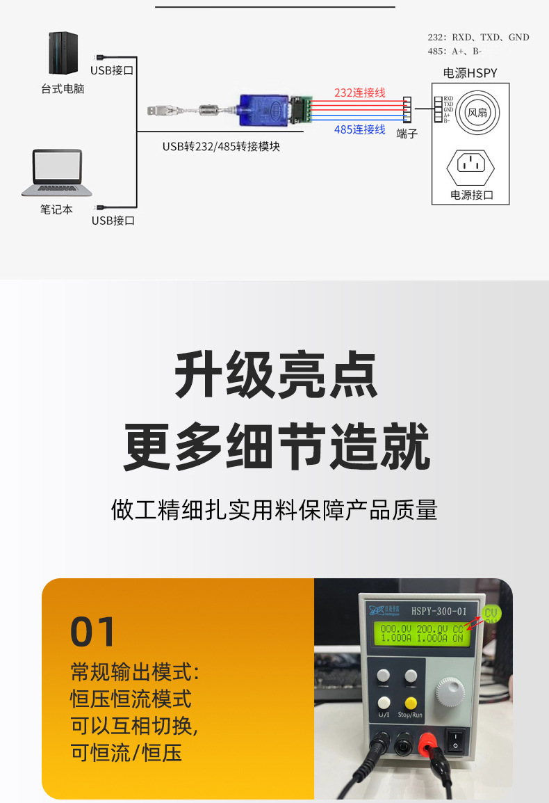 Программируемый стабилизированный источник питания Hansheng Puyuan с высокоточным 4-значным дисплеем, включая последовательный порт RS232/485 hspy500V2A