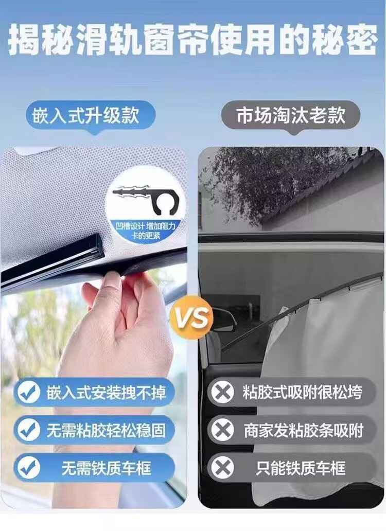Автомобильные солнцезащитные занавески со встроенными рельсами