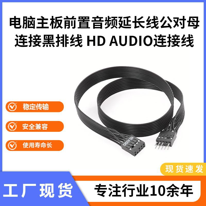 产品名称:电脑主板前置音频延长线公对母连接黑排线 HD AUDIO连接线