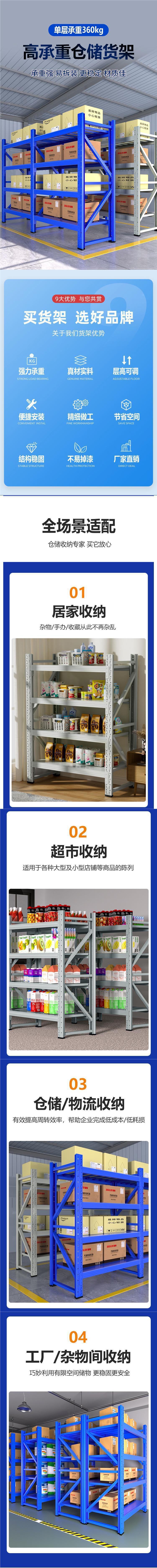 Склад 3m полки увеличенной высоты, 2.7m многослойные утолщенные и усиленные стеллажи для хранения, 5-слойные сверхпрочные высокие несущие способности.