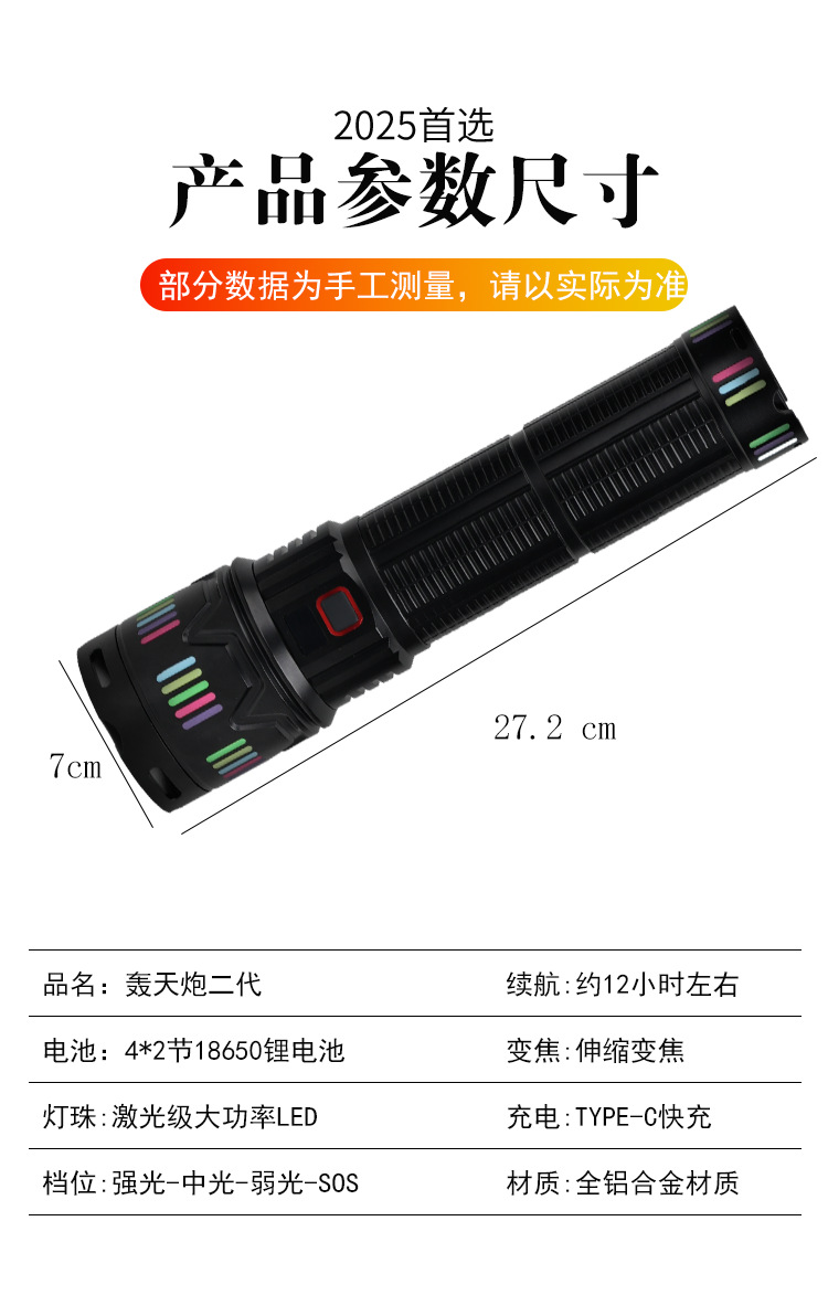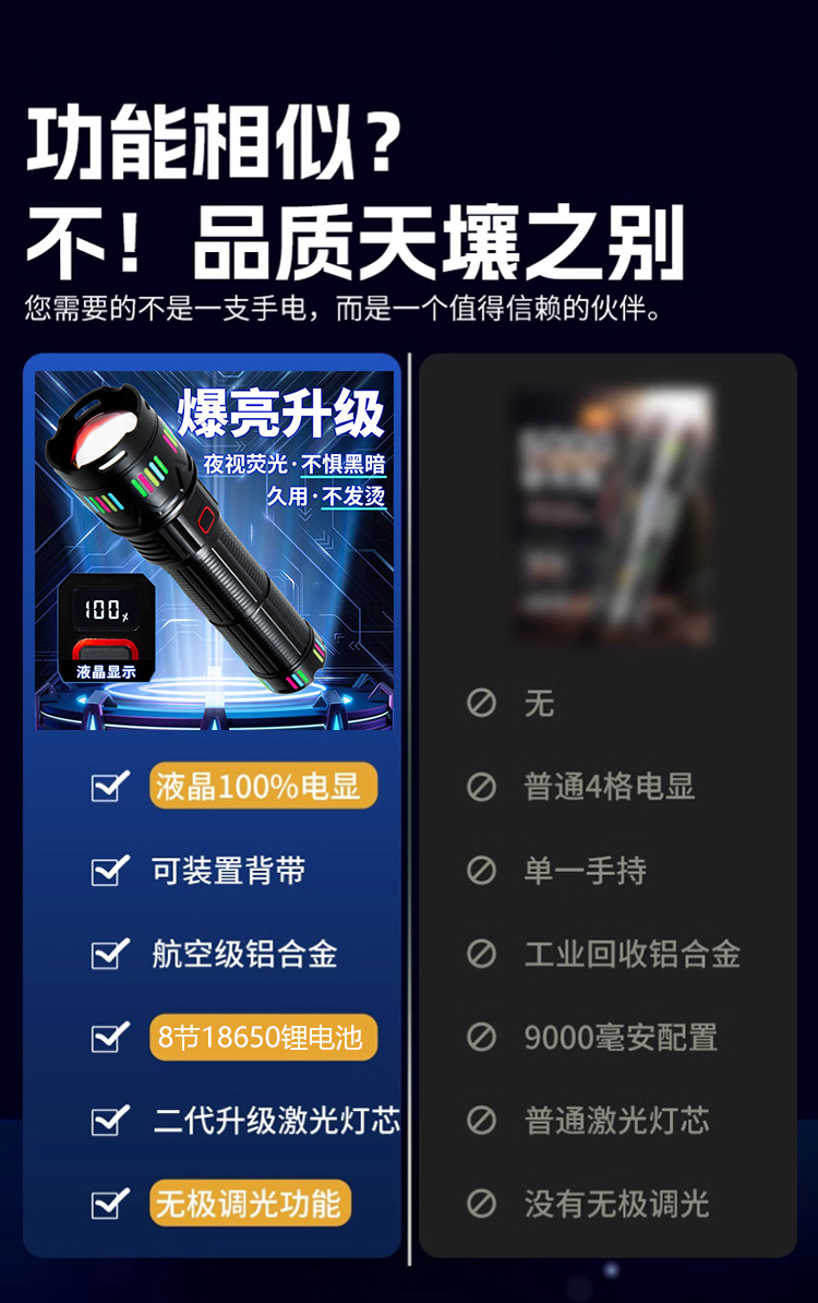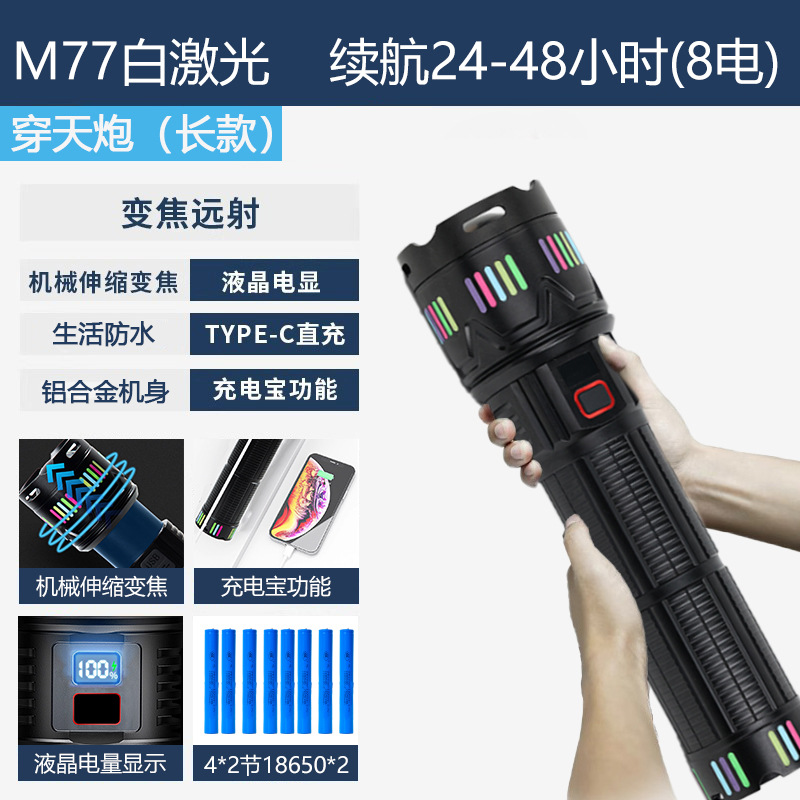 Мощный фонарь-лазер, сверхъяркий уличный ручной фонарь дальнего действия с перезаряжаемой литиевой батареей длительного действия для дома