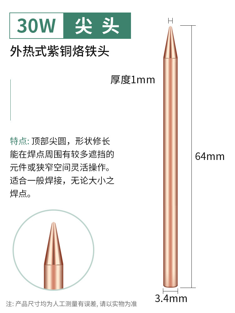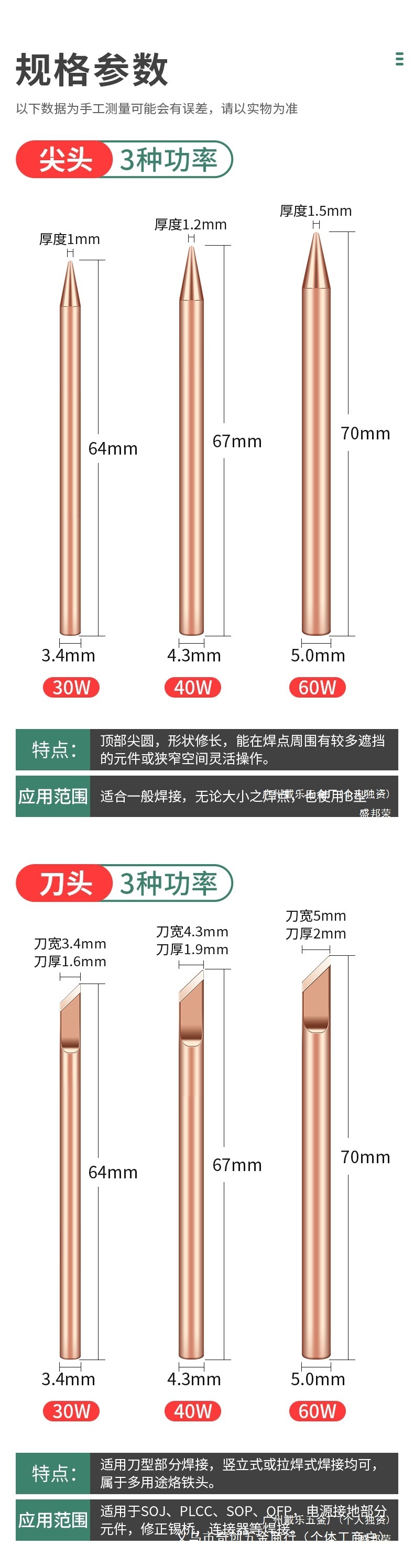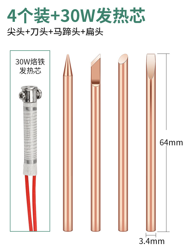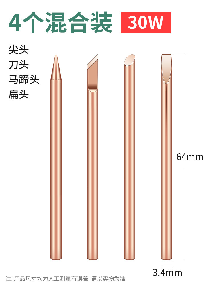 ⭐ Чистая медь ⭐ Быстро нагревается ⭐ Низкотемпературная сварка [рекомендуемая температура сварки 200-300 ° 】, 30 Вт чистая медь красная медь [заостренный кончик], 30 Вт чистая медь красная медь