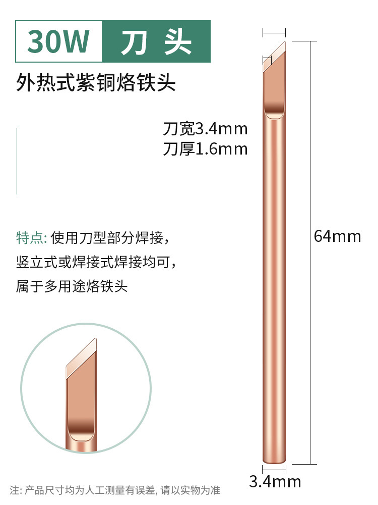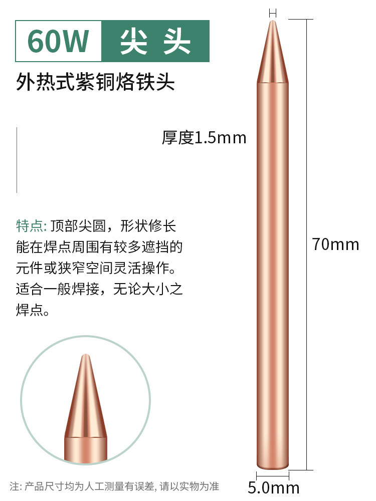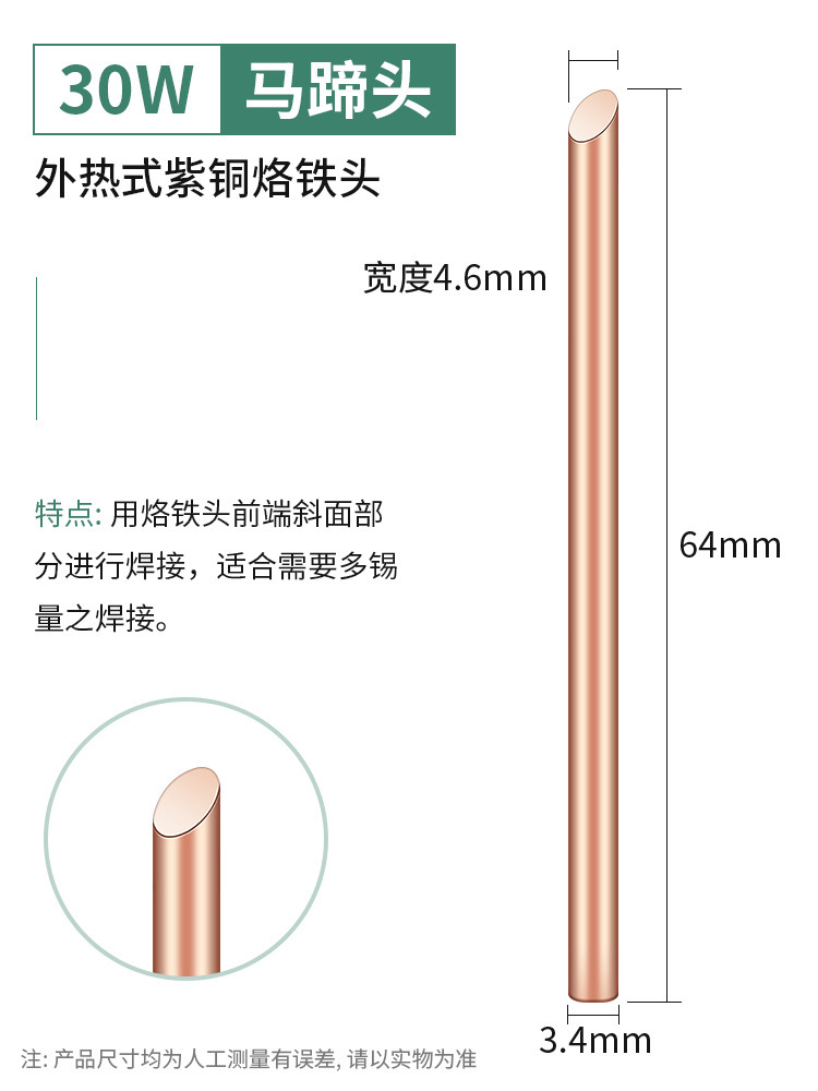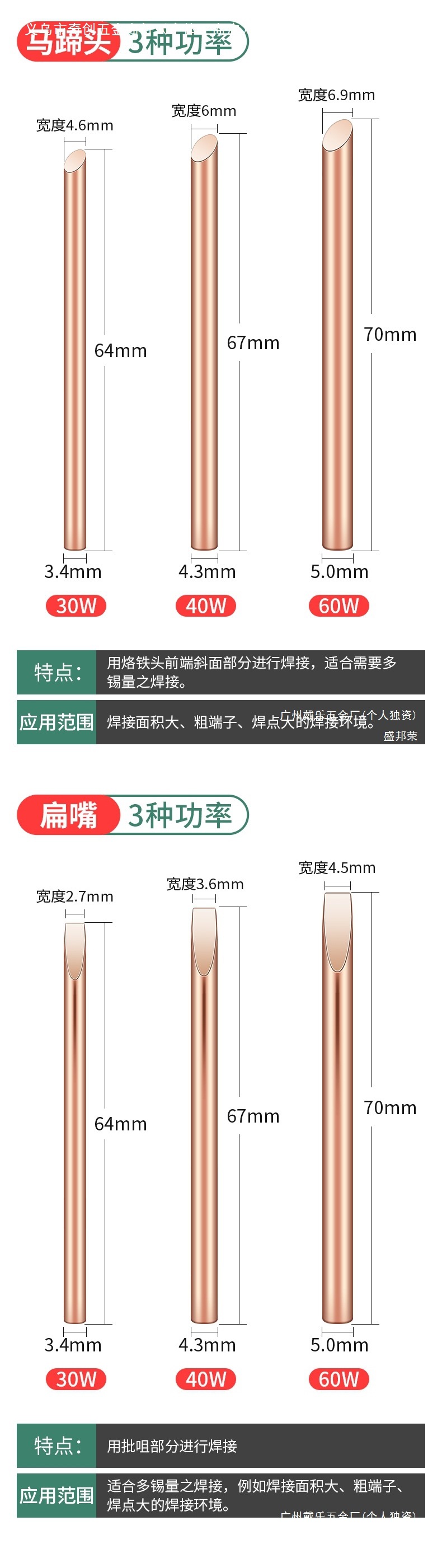 ⭐ Чистая медь ⭐ Быстро нагревается ⭐ Низкотемпературная сварка [рекомендуемая температура сварки 200-300 ° 】, 30 Вт чистая медь красная медь [заостренный кончик], 30 Вт чистая медь красная медь